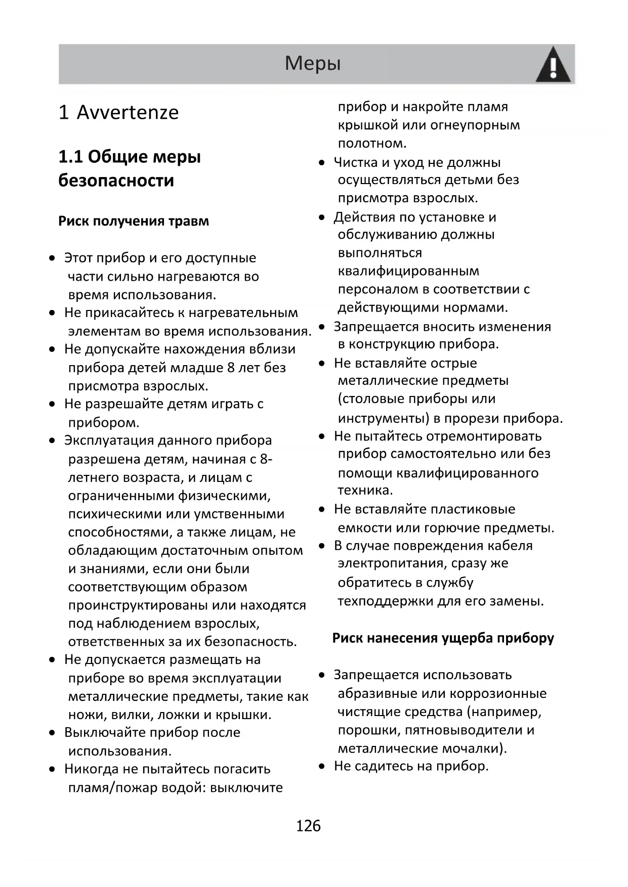 предосторожности RU130