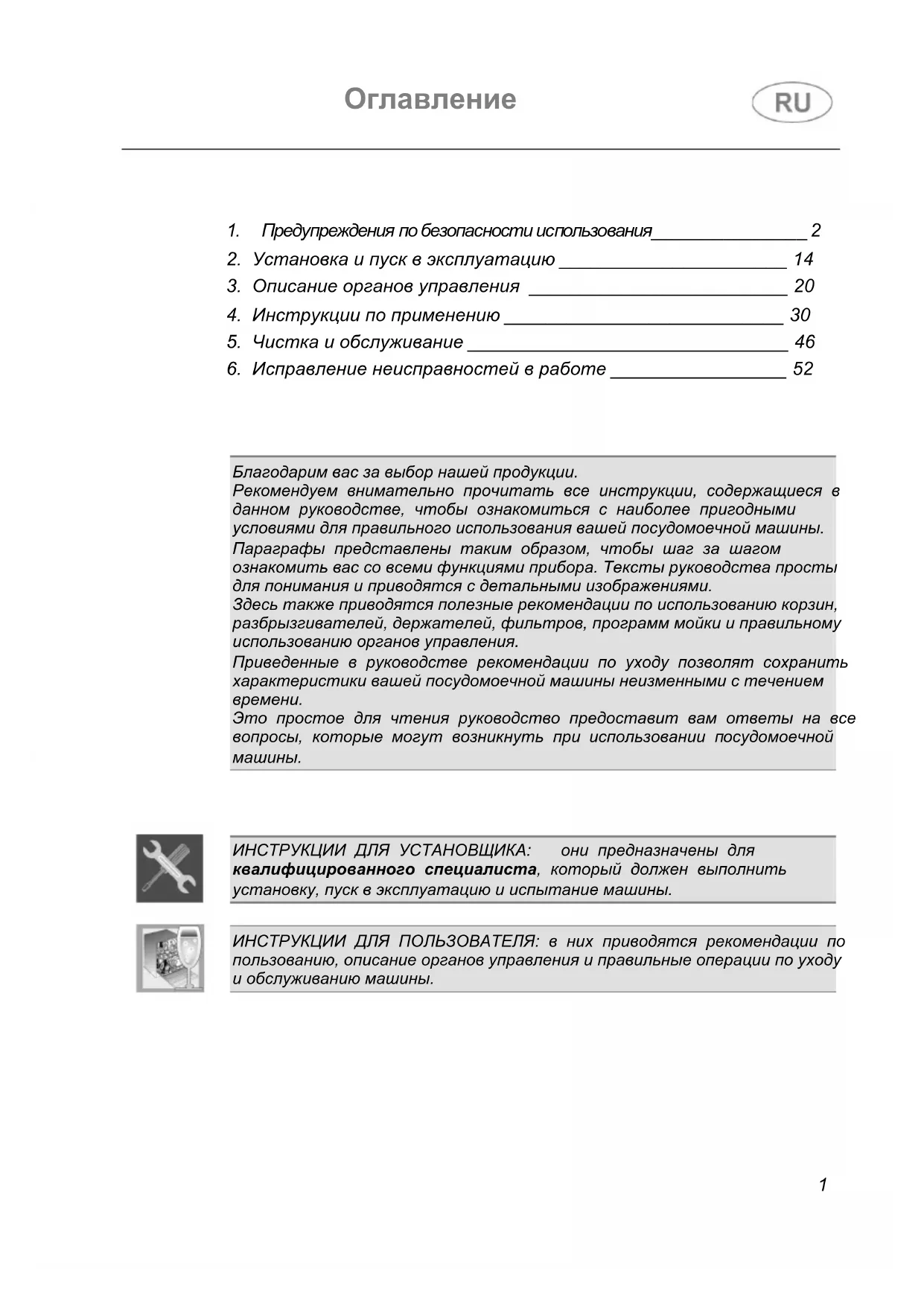 ДАННОЕ РУКОВОДСТВО ЯВЛЯЕТСЯ НЕОТЪЕМЛЕМОЙ ЧАСТЬЮ ПРИБОРА. ОНО ДОЛЖНО СОДЕРЖАТЬСЯ В СОХРАННОСТИ, ВМЕСТЕ С ПОСУДОМОЕЧНОЙ МАШИНОЙ. ПЕРЕД НАЧАЛОМ ИСПОЛЬЗОВАНИЯ РЕКОМЕНДУЕМ ВНИМАТЕЛЬНО ПРОЧИТАТЬ ВСЕ ИНСТРУКЦИИ, СОДЕРЖАЩИЕСЯ В ДАННОМ РУКОВОДСТВЕ. ОНИ СОДЕРЖАТ ВАЖНУЮ ИНФОРМАЦИЮ ПО УСТАНОВКЕ, ИСПОЛЬЗОВАНИЮ И ОСЛУЖИВАНИЮ ПРИБОРА. ПРИ ПРОДАЖЕ ИЛИ ПЕРЕВОЗКЕ УБЕДИТЕСЬ, ЧТО РУКОВОДСТВО НАХОДИТСЯ ВМЕСТЕ С