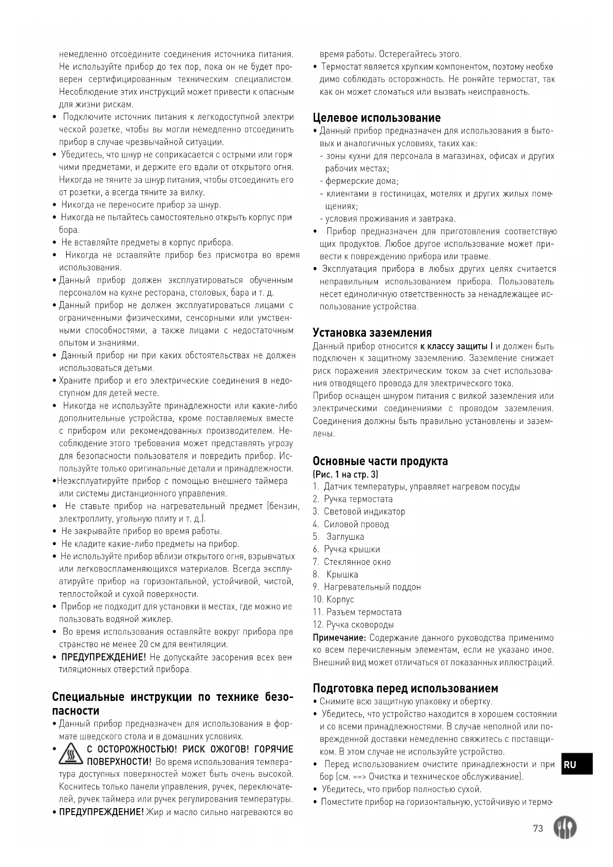 - Данный прибор предназначен для использования в фор- мате шведского стола и в домашних условиях.