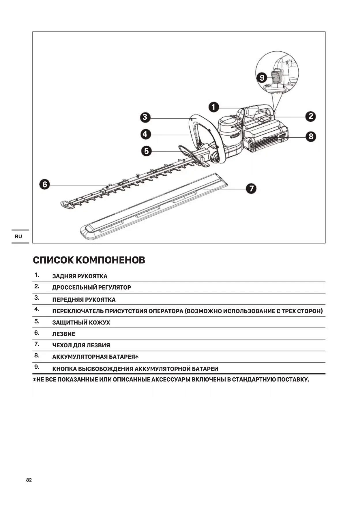 перенос кустореза снизит риск случайного запуска и получения трамв от лезвий. c) При транспортировке или хранении шпалерныхRU
