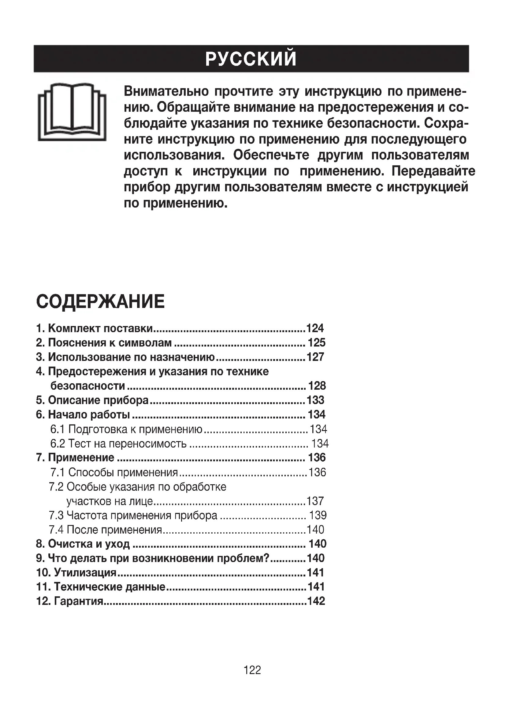мость (см. главу «6.2 Тест напереносимость»). Чтобы определить подходящий уровень мощности, проводите тест напереносимость научастках без волос, на- пример заухом или сбоку нашее. ПРЕДУПРЕЖДЕНИЕ Зону, на которой проводился тест на переносимость, можно обрабатывать неранее чем через 1неделю после этого.
