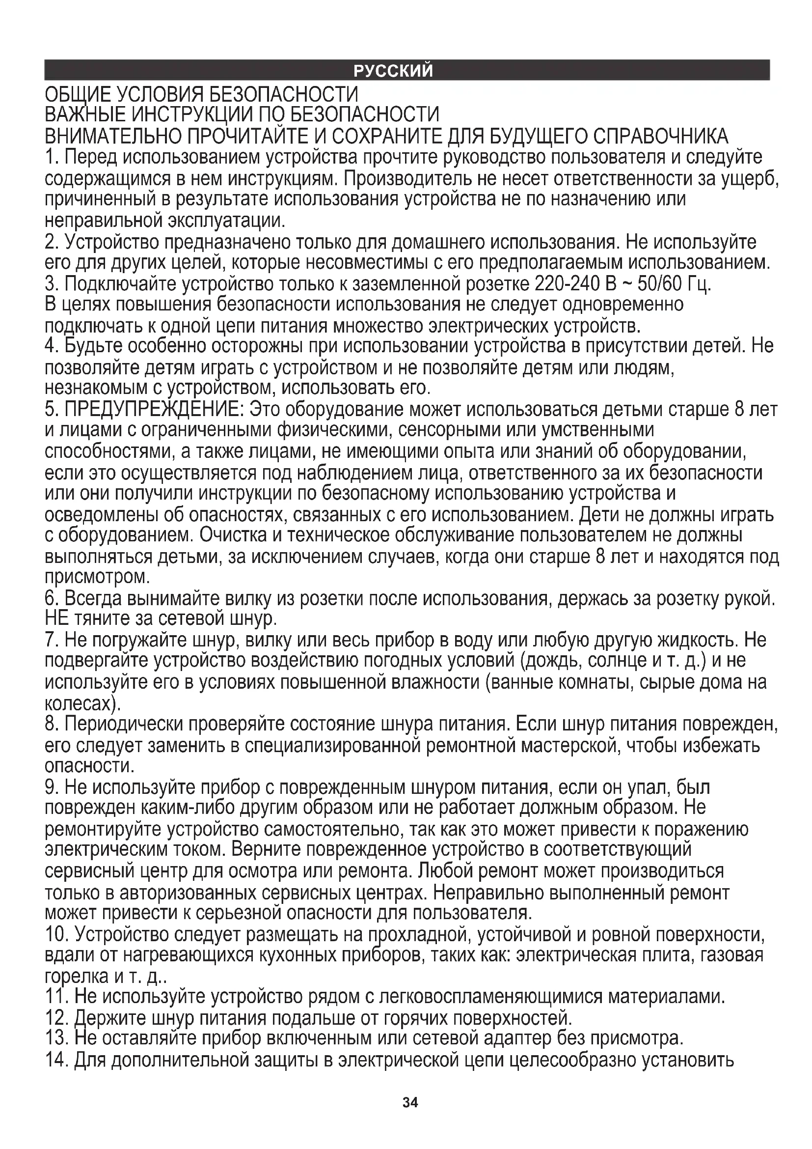 29. Перед тем, как вынуть вилку из розетки, всегда выключайте прибор кнопкой.