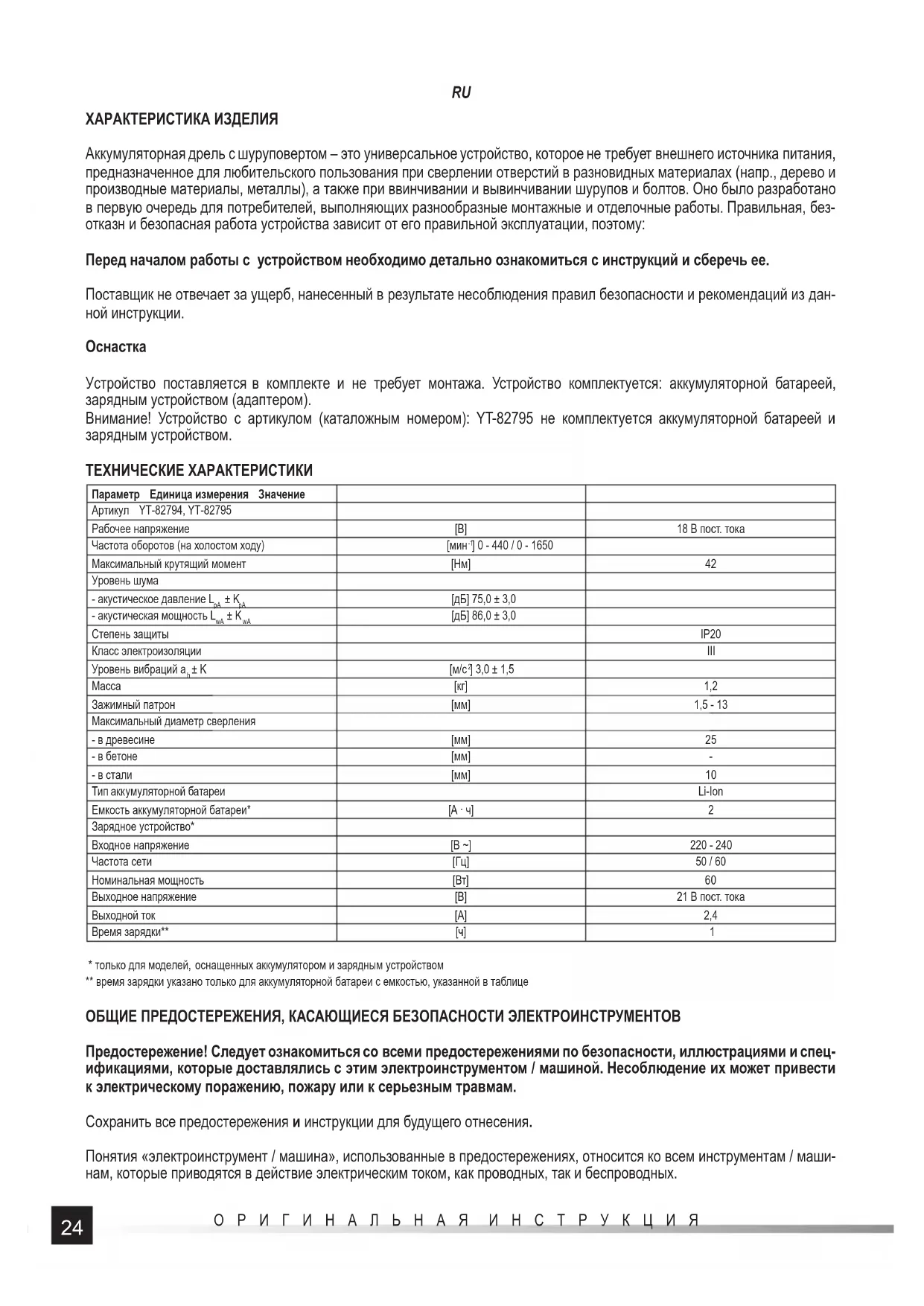 YT-82795 - дрель Yato - Бесплатное руководство пользователя