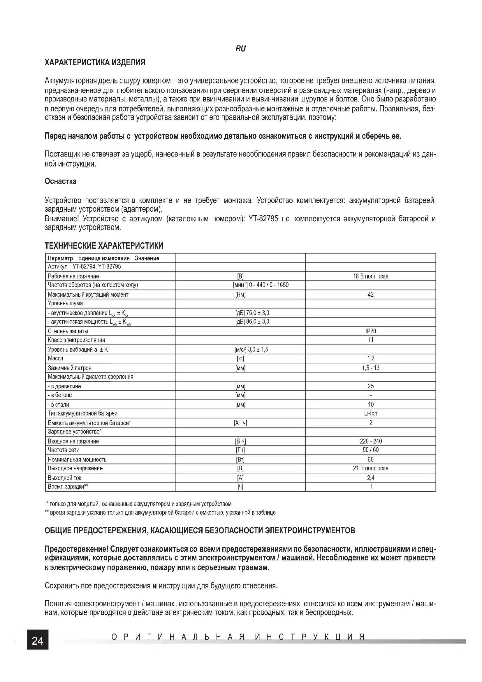 РУКОВОДСТВО ПОЛЬЗОВАТЕЛЯ YT-82794 Yato