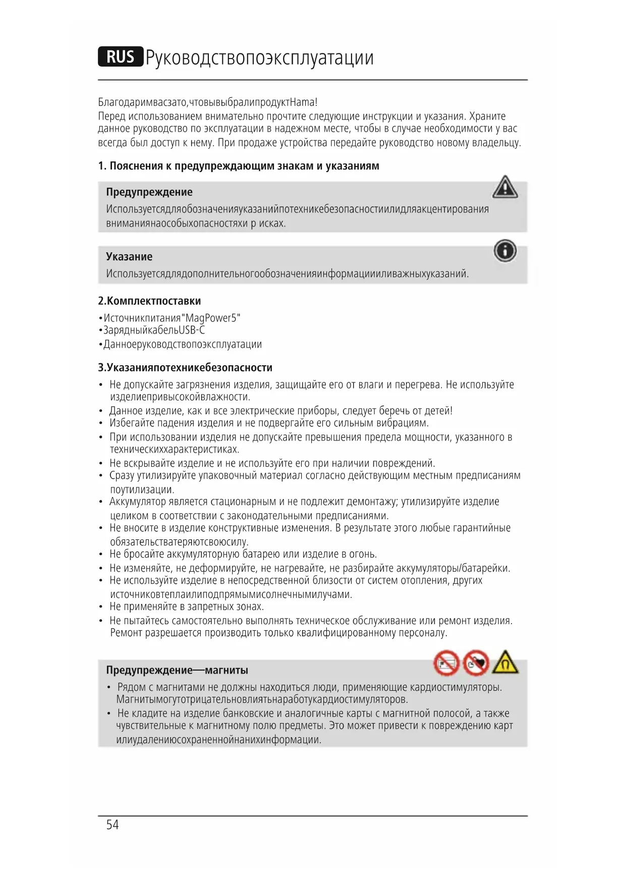 РУКОВОДСТВО ПОЛЬЗОВАТЕЛЯ MagPower4 201695 HAMA