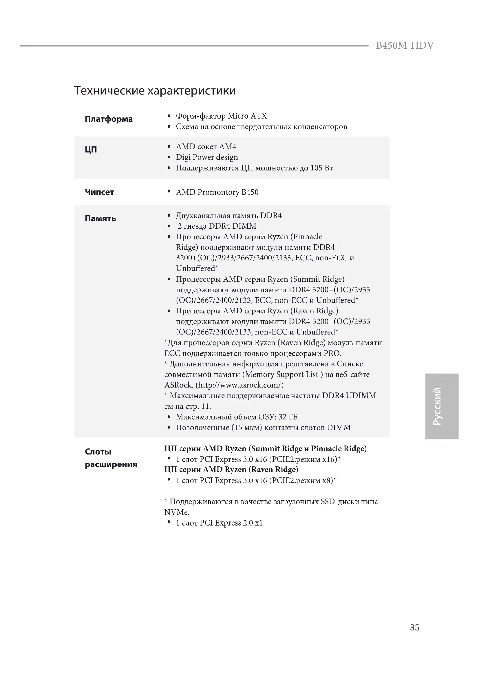 РУКОВОДСТВО ПОЛЬЗОВАТЕЛЯ B450M-HDV ASROCK