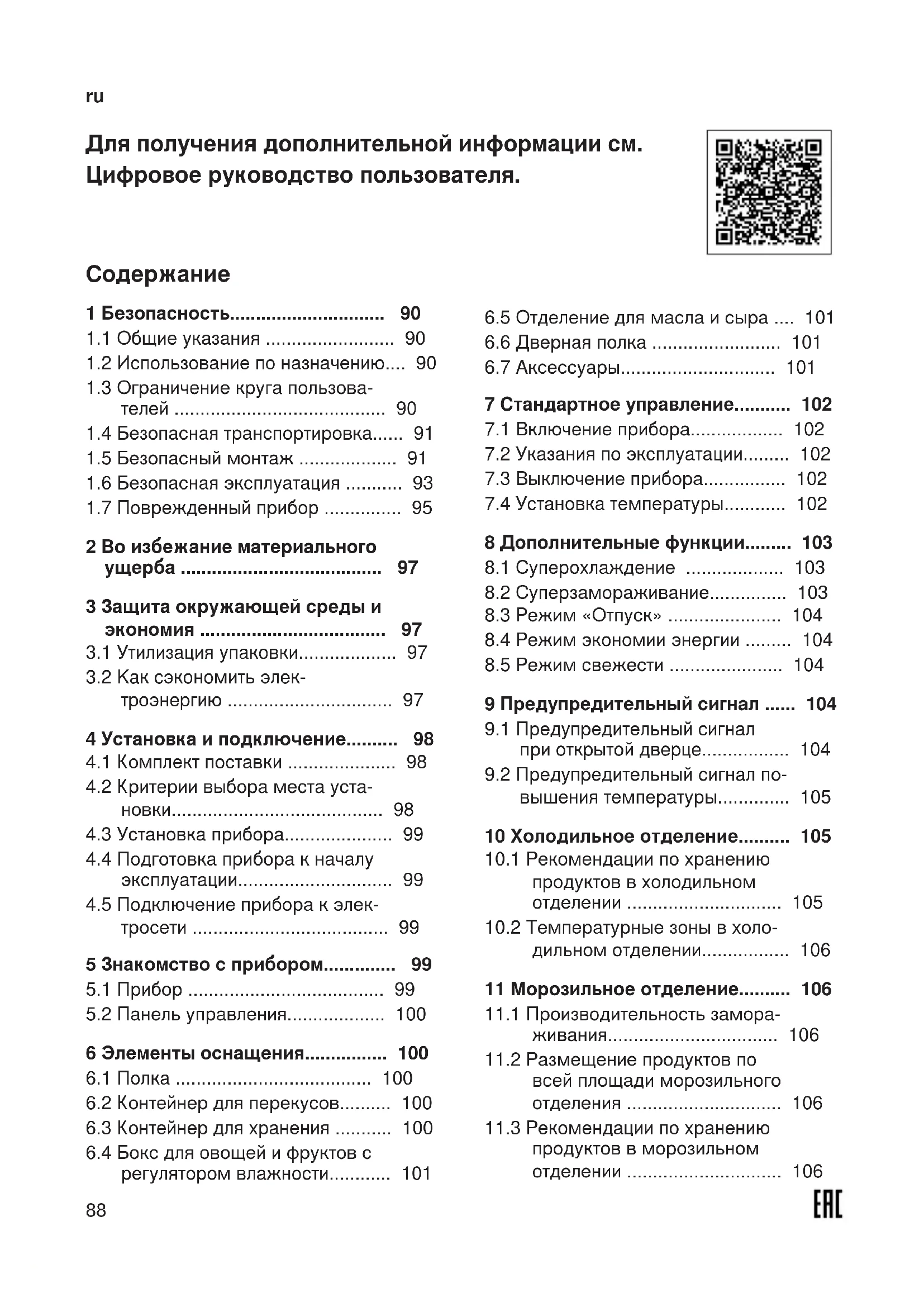 дильном отделении................. 106 11 Морозильное отделение..........106