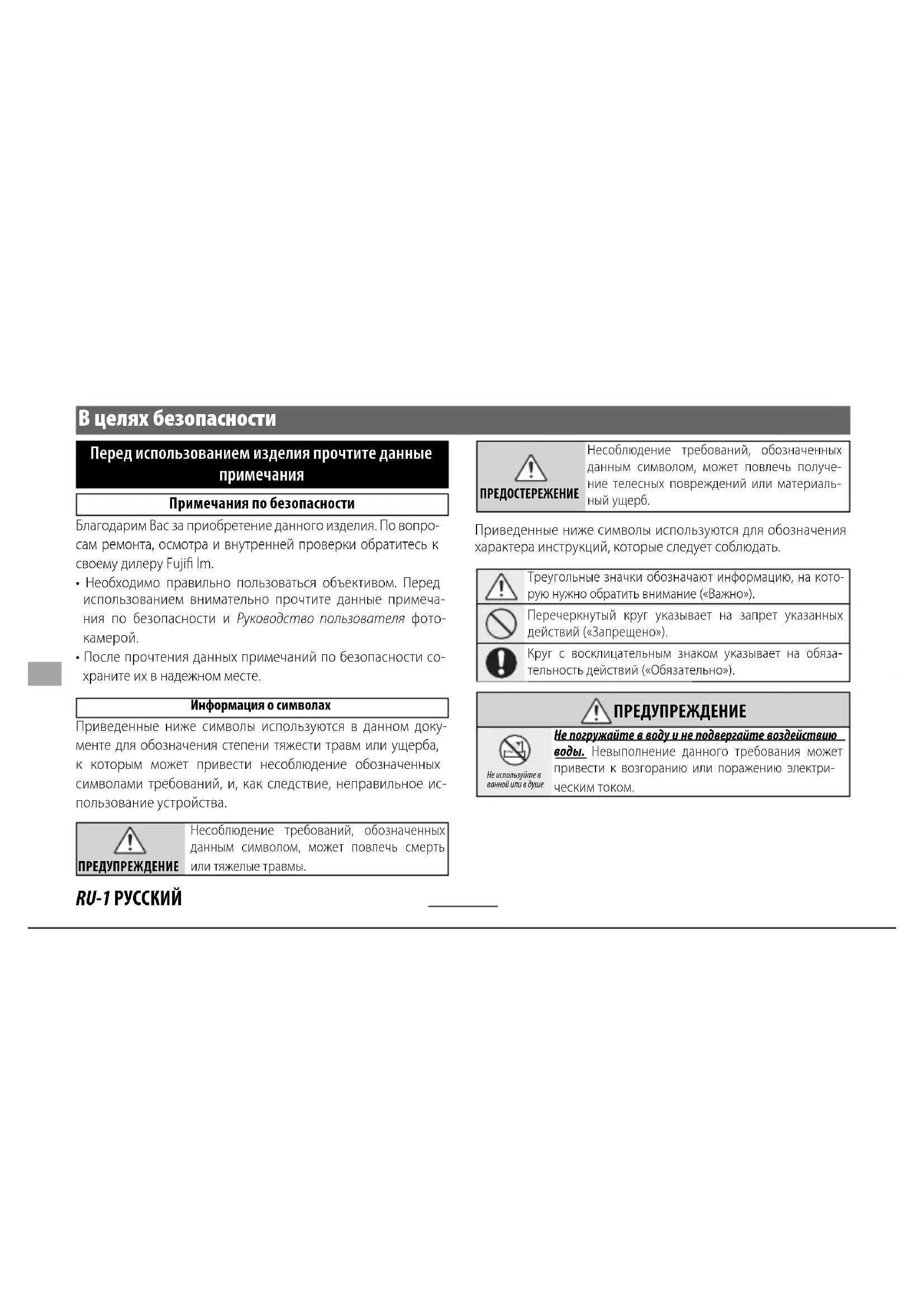 Примечания по безопасности Благодарим Вас за приобретение данного изделия. По вопро- сам ремонта, осмотра и внутренней проверки обратитесь к своему дилеру Fujifi lm.