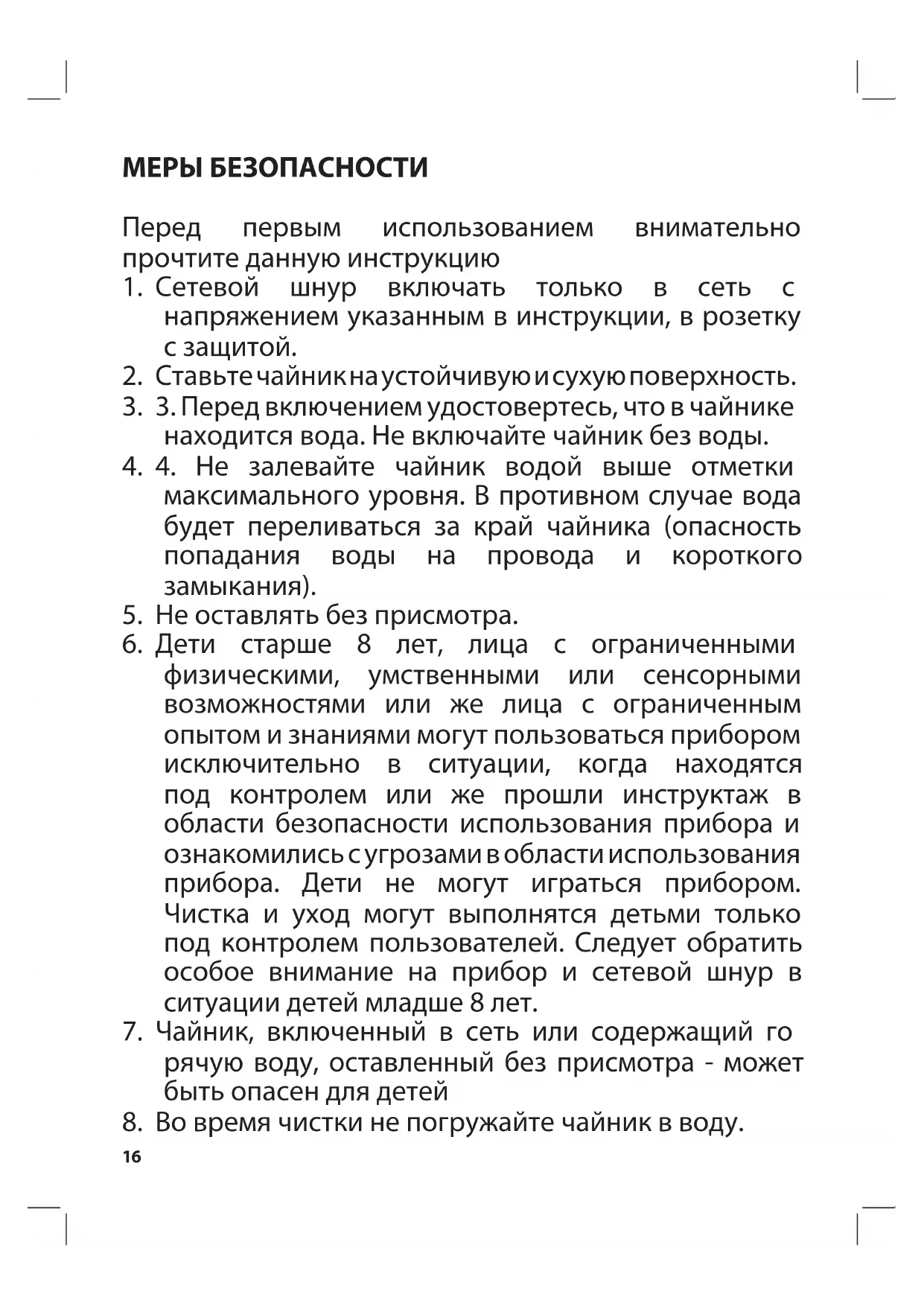 - Устройство предназначено только для домашнего использования. - В случае неправильной эксплуатации гарантия не является ействительной.18 ИНСТРУКЦИЯ ПО ЭКСПЛУАТАЦИИ ЧАЙНИК БЕЗ ШНУРА C520