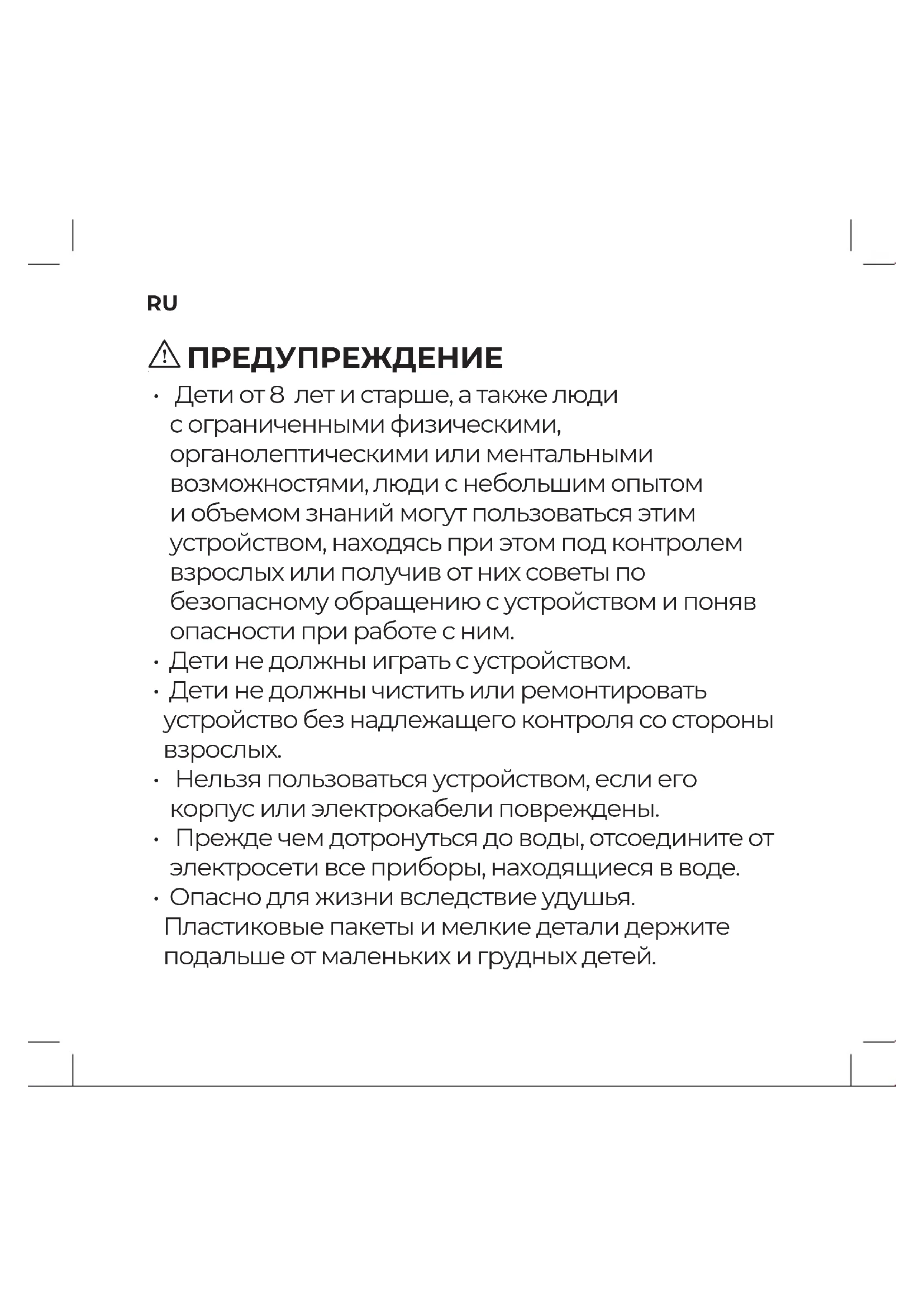 - Дети не должны чистить или ремонтировать устройство без надлежащего контроля со стороны
