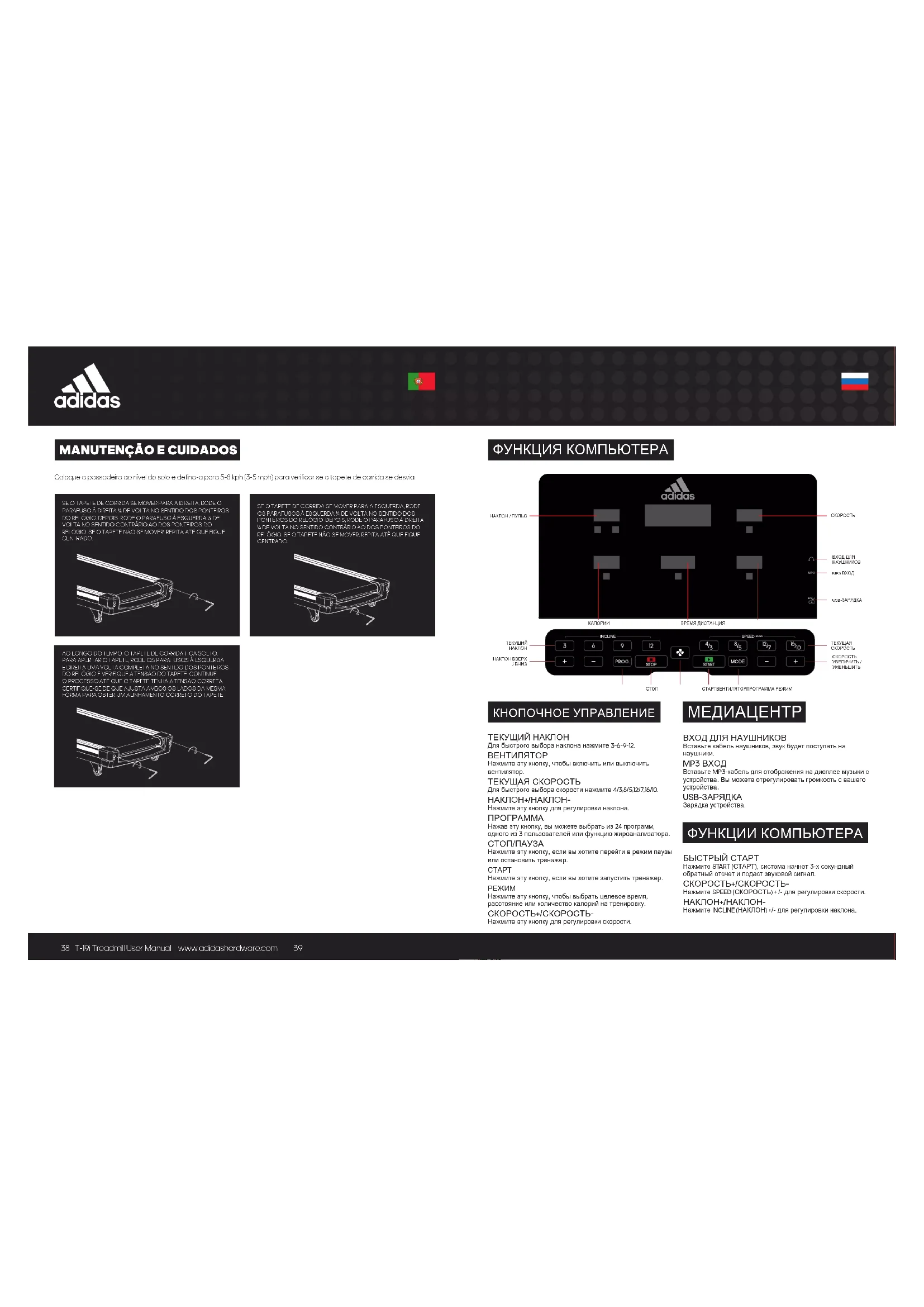 T-19i - беговая дорожка ADIDAS - Бесплатное руководство пользователя