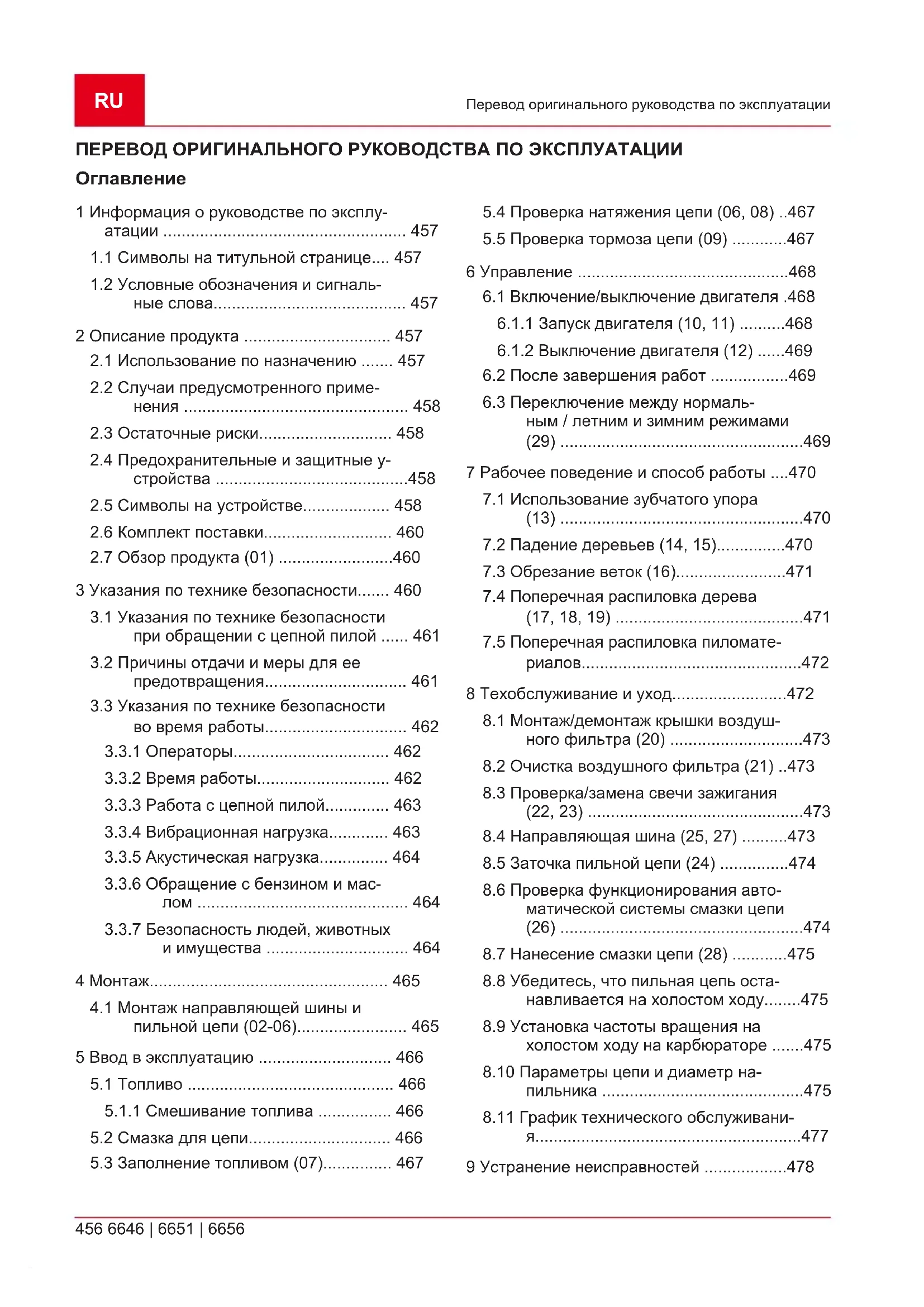 пильной цепи (02-06)........................ 465 5 Ввод в эксплуатацию ............................. 466