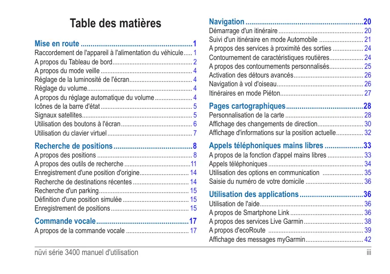 Utilisation de l'aide������������������������������������������������������������� 36 A propos de Smartphone Link������������������������������������������� 36 A propos des services Live Garmin����������������������������������� 38 A propos d'ecoRoute �������������������������������������������������������� 39 Affichage des messages myGarmin���������������������������������� 42