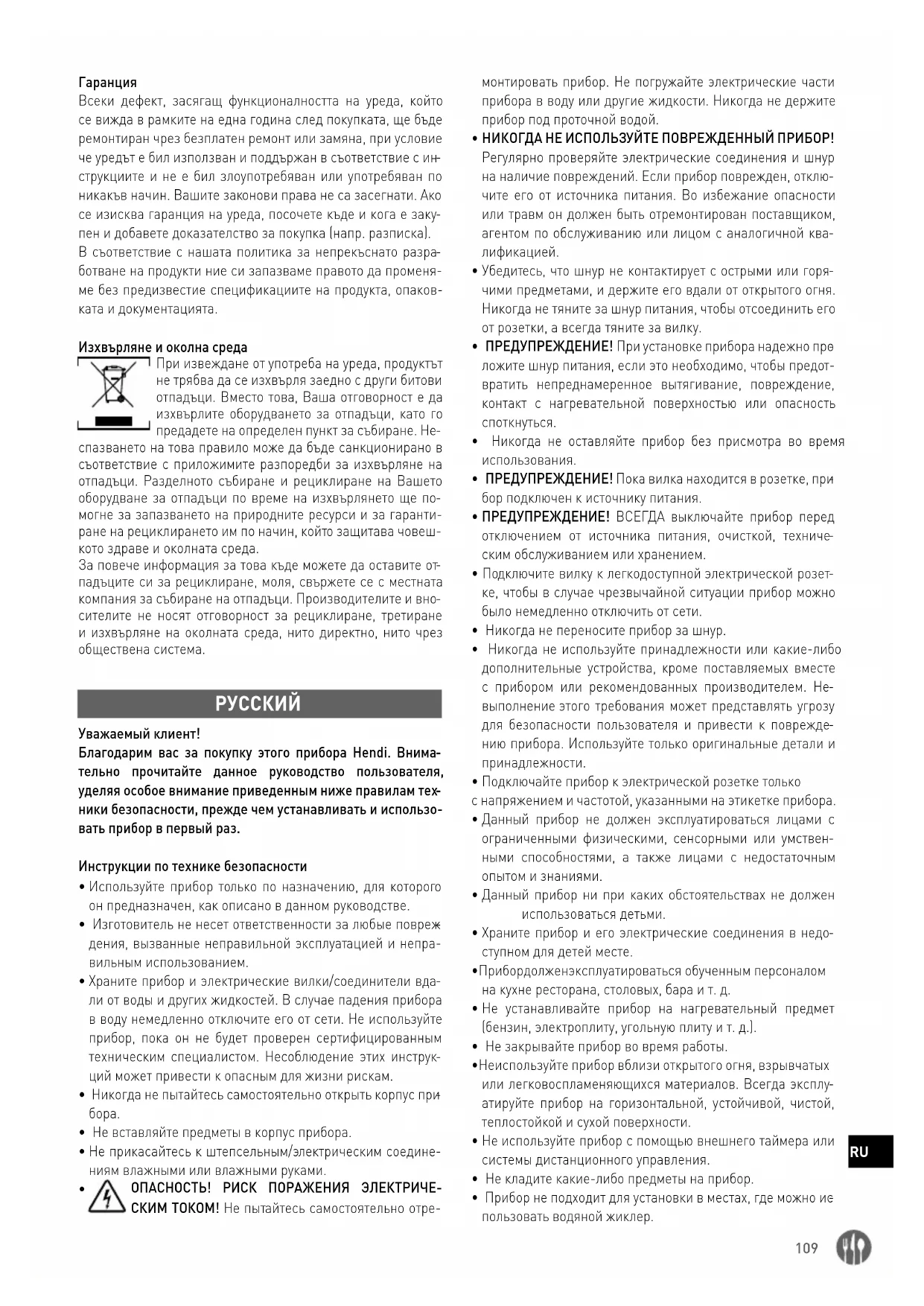 РУКОВОДСТВО ПОЛЬЗОВАТЕЛЯ 221761 Hendi