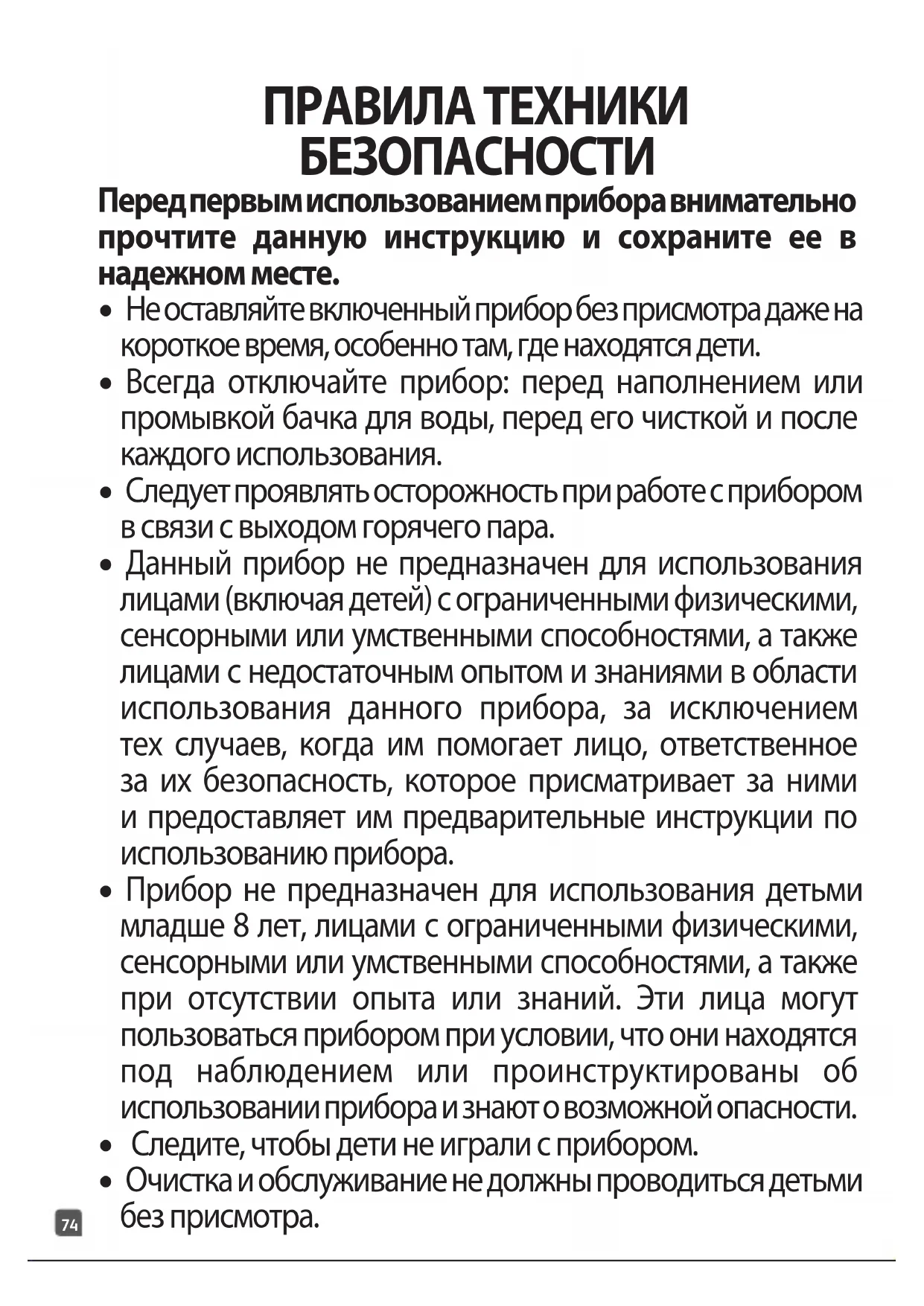 - Очистка и обслуживание не должны проводиться детьми без присмотра.75