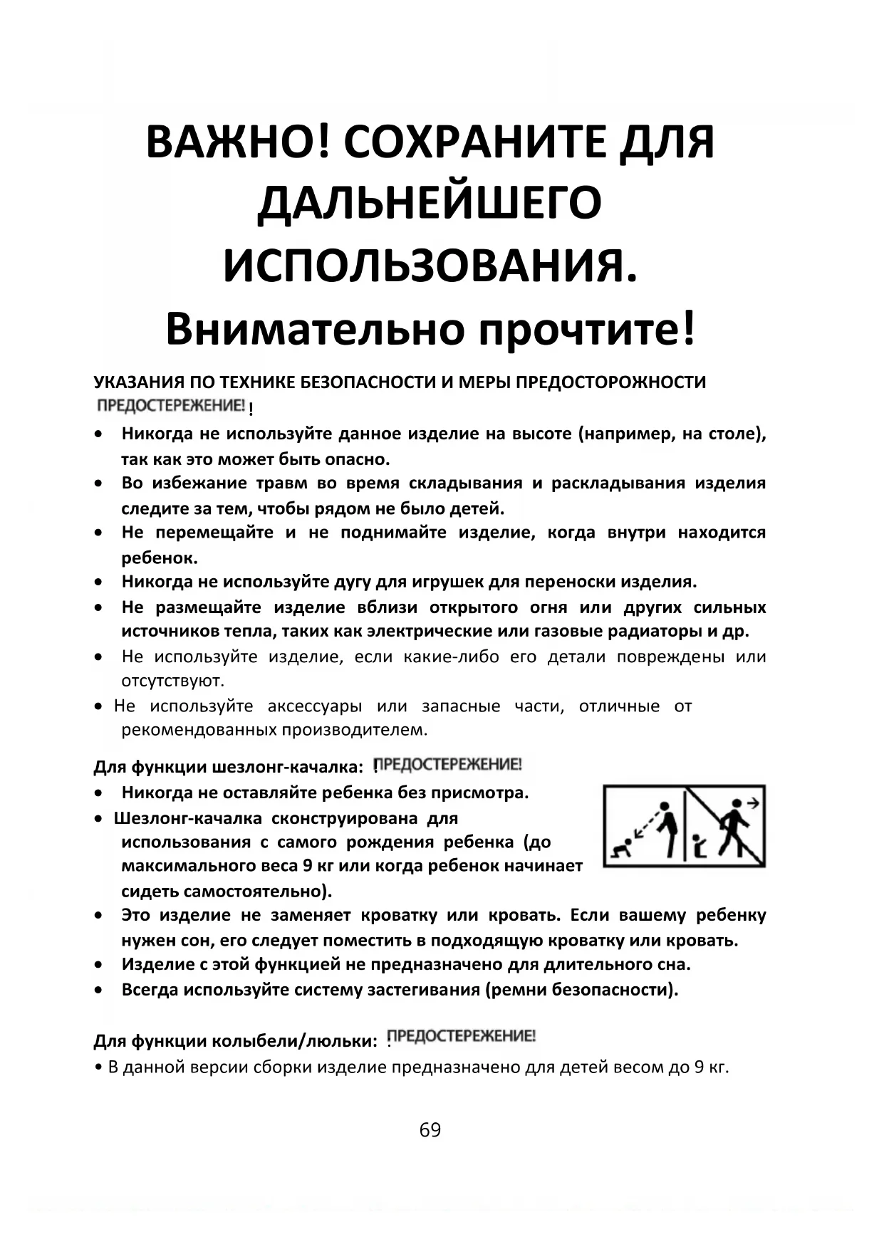 - Во избежание травм во время складывания и раскладывания изделия следите за тем, чтобы рядом не было детей.