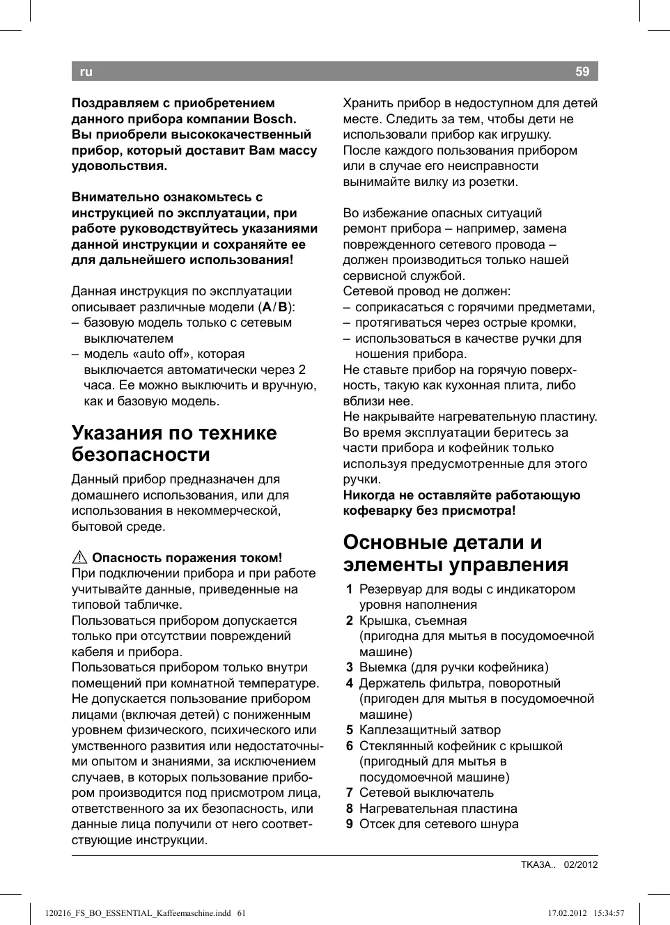 Найдите руководство к устройству бесплатно TKA3A014 BOSCH в формате PDF.