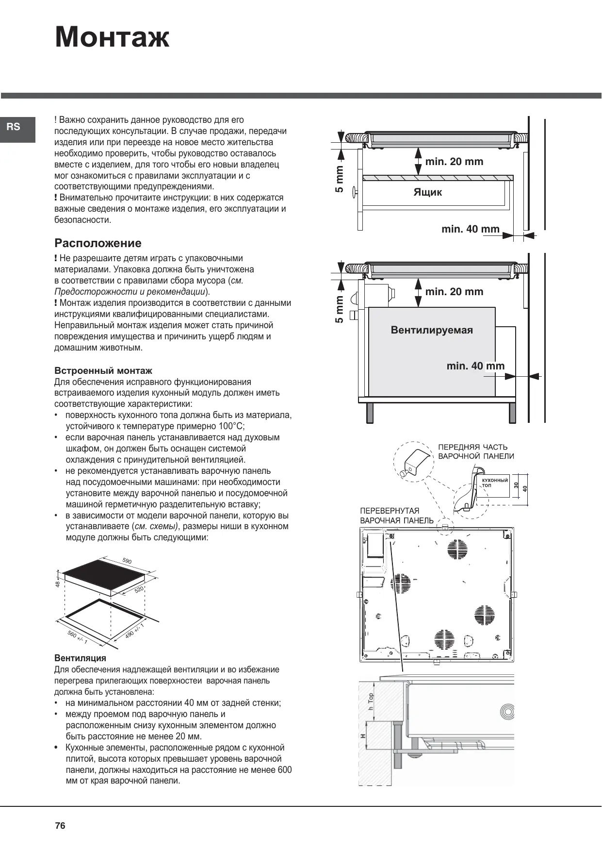 TIROIR • de manière à ce qu’il reste au moins 20 mm de distance entre la découpe d’encastrement et le meuble en dessous. • Les meubles jouxtant la table, dont la hauteur dépasse celle du plan de cuisson, doivent être placés à au moins 600 mm du bord du plan.