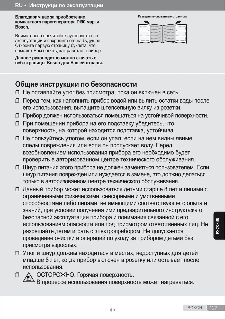 RU • Инструкци по эксплуатации Благодарим вас за приобретение компактного парогенератора DI90 марки Bosch.