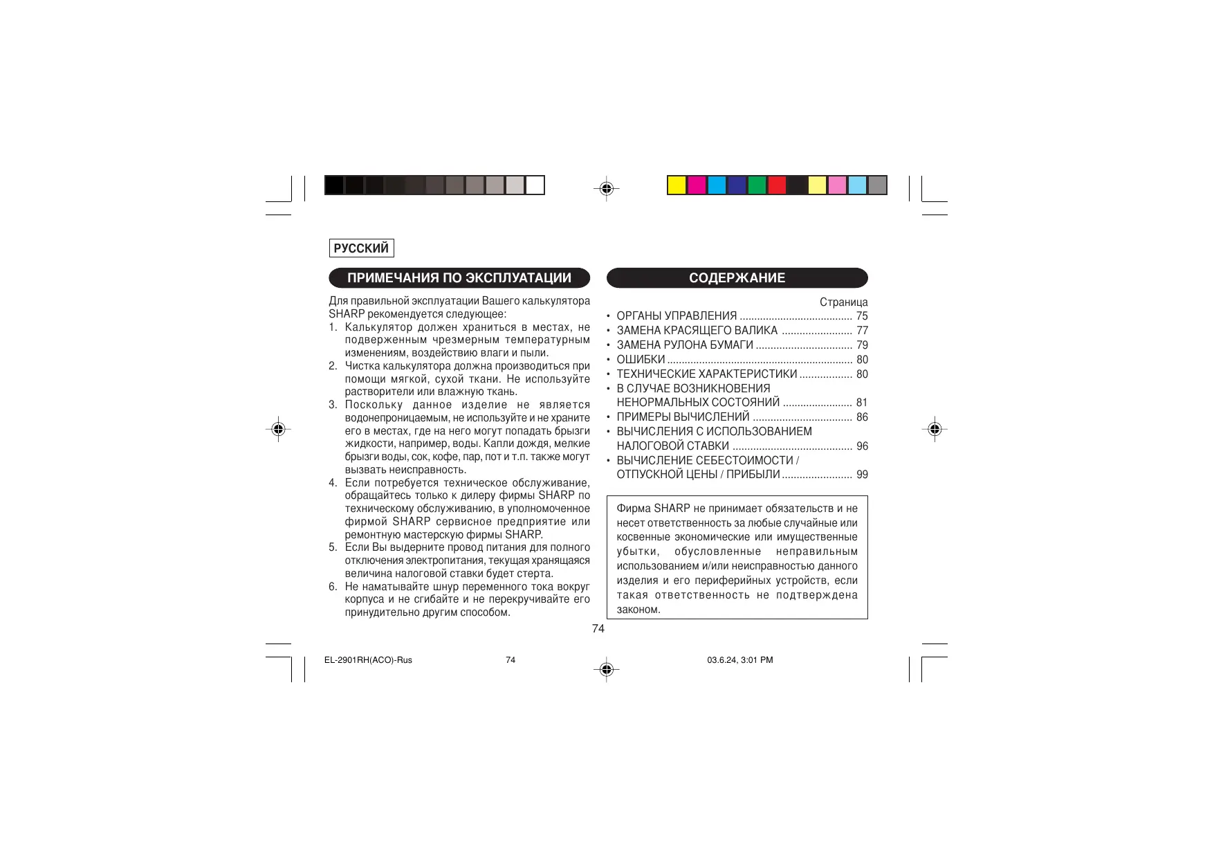 РУКОВОДСТВО ПОЛЬЗОВАТЕЛЯ EL-2901RH SHARP