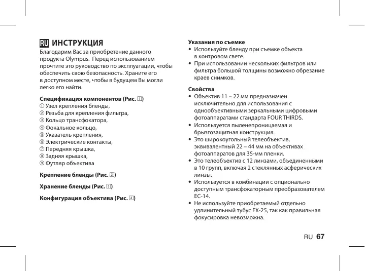 РУКОВОДСТВО ПОЛЬЗОВАТЕЛЯ ZUIKO DIGITAL 11-22 MM 1:2.8-3.5 OLYMPUS