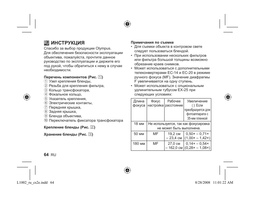 РУКОВОДСТВО ПОЛЬЗОВАТЕЛЯ ZUIKO DIGITAL ED 18-180MM F3.5-6.3 OLYMPUS