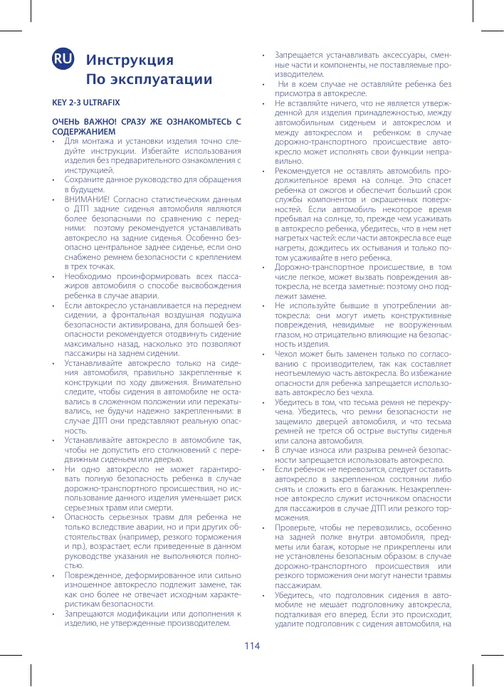 - Крепления Ultrafix должны использоваться вместе с ремнями безопасности автомобиля. Ни в коем случае не допускается крепление автокресла только с помощью креплений Ultrafix.