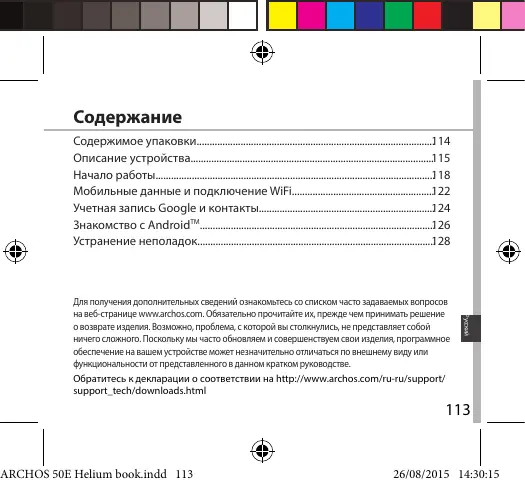 Скачайте инструкцию для вашего смартфон в формате PDF бесплатно! Найдите своё руководство 50E HELIUM - ARCHOS и возьмите своё электронное устройство обратно в руки. На этой странице опубликованы все документы, необходимые для использования вашего устройства. 50E HELIUM бренда ARCHOS.