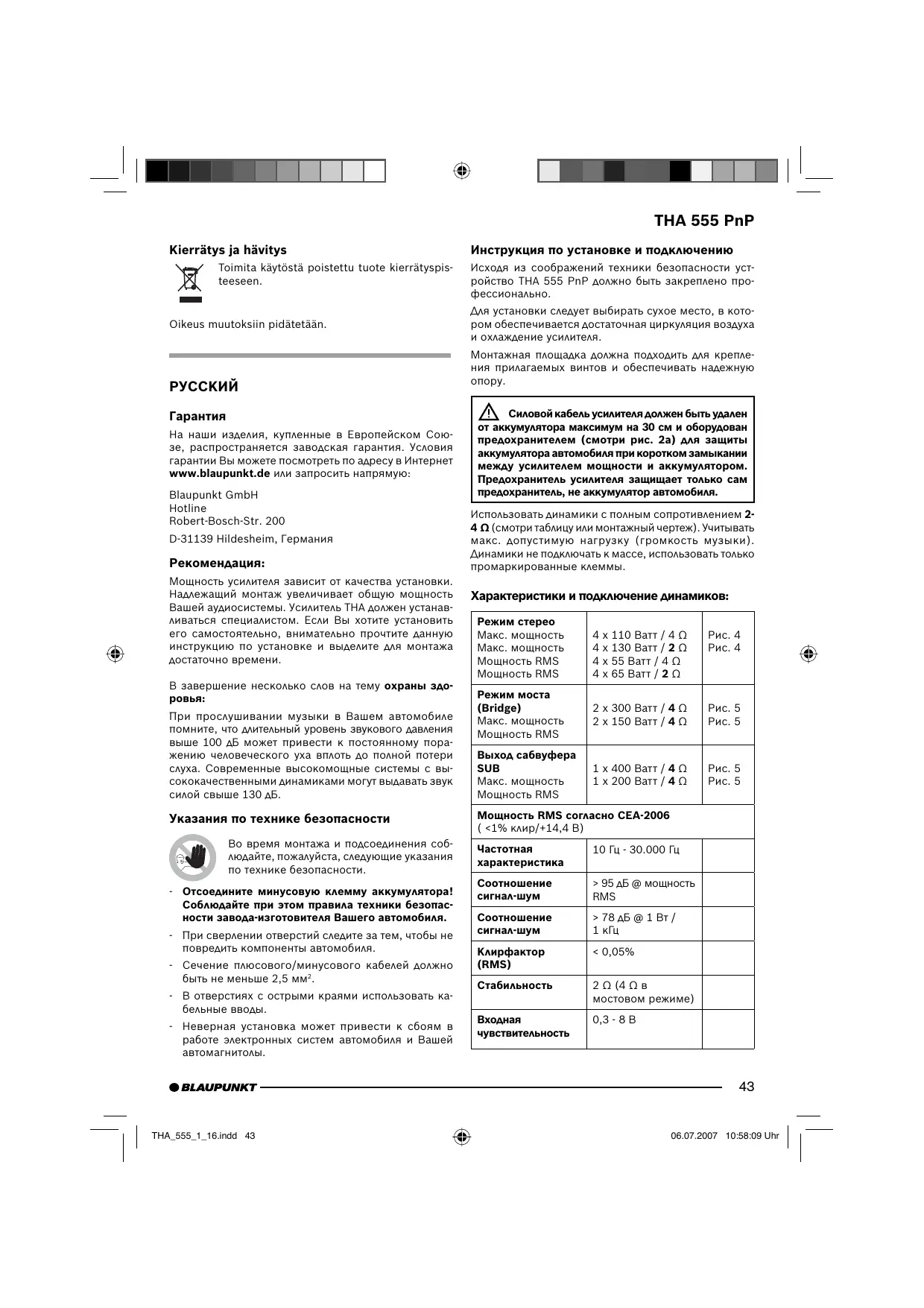 THA 555 PNP - Автомобильный усилитель BLAUPUNKT - Бесплатное руководство пользователя
