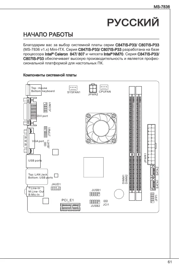 РУКОВОДСТВО ПОЛЬЗОВАТЕЛЯ C847MS-E33 MSI