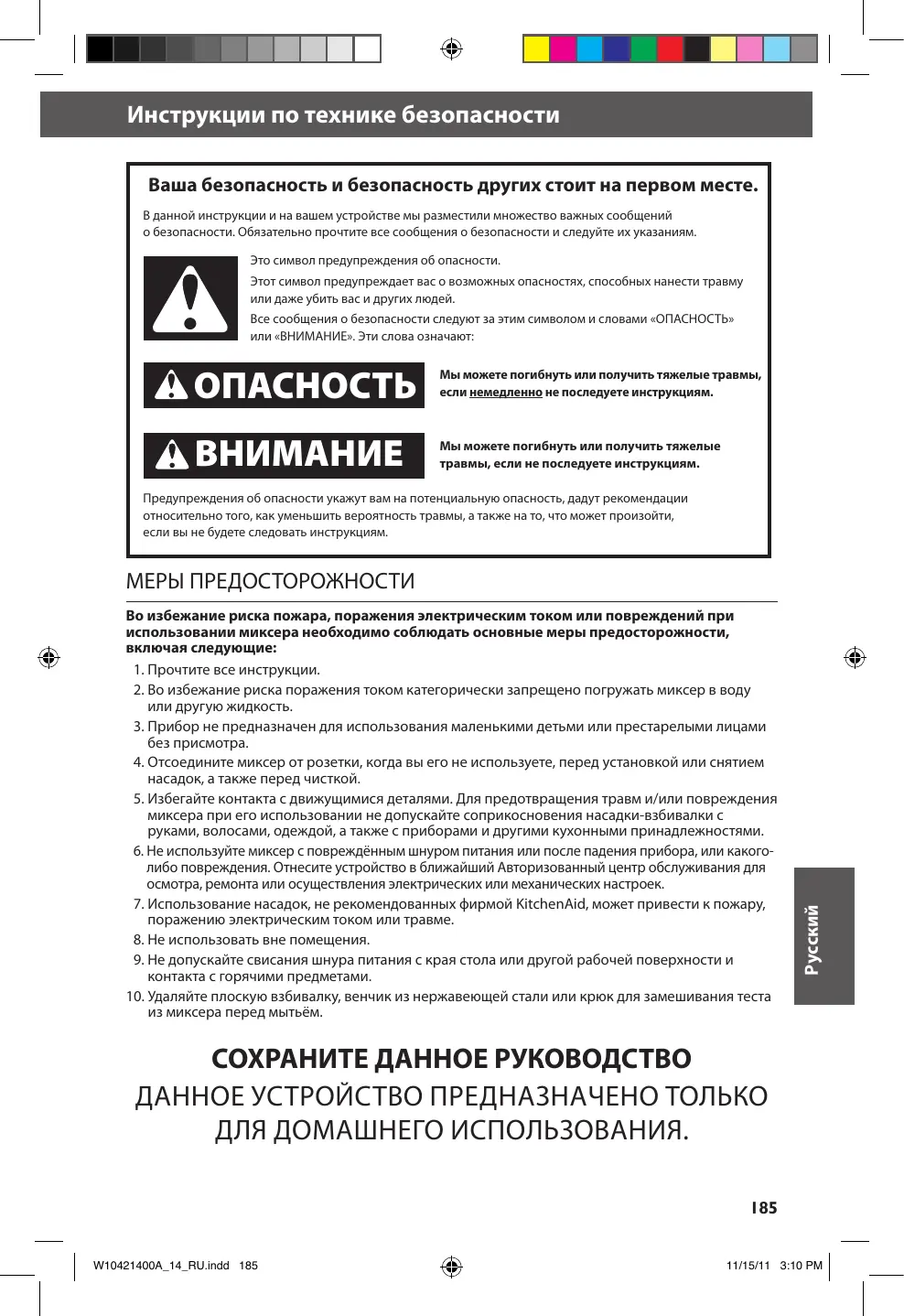 РУКОВОДСТВО ПОЛЬЗОВАТЕЛЯ 5KSM7580, 5KSM7580XEMS KITCHENAID