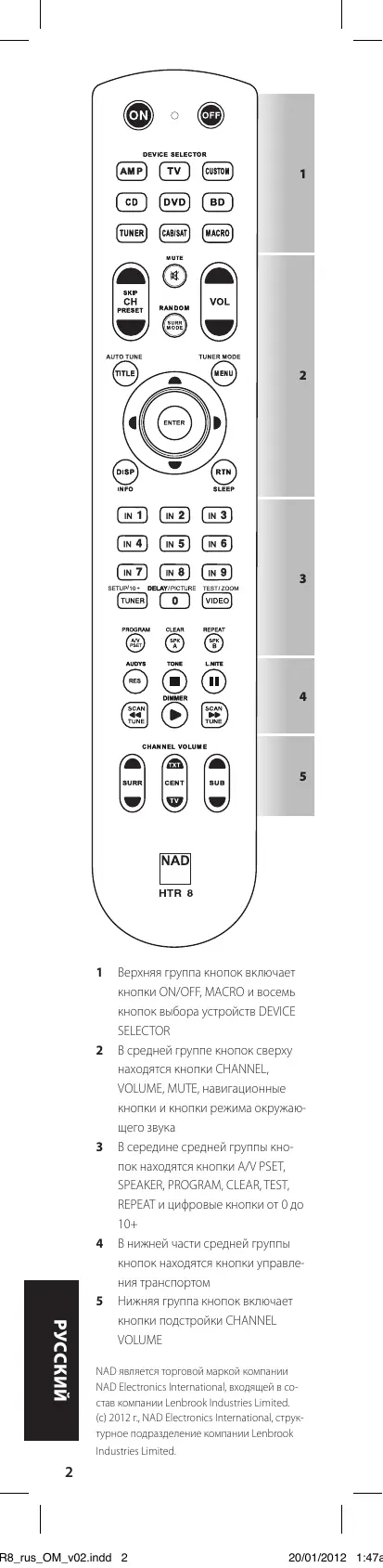 Найдите руководство к устройству бесплатно HTR8 LEARNING REMOTE CONTROL NAD в формате PDF.