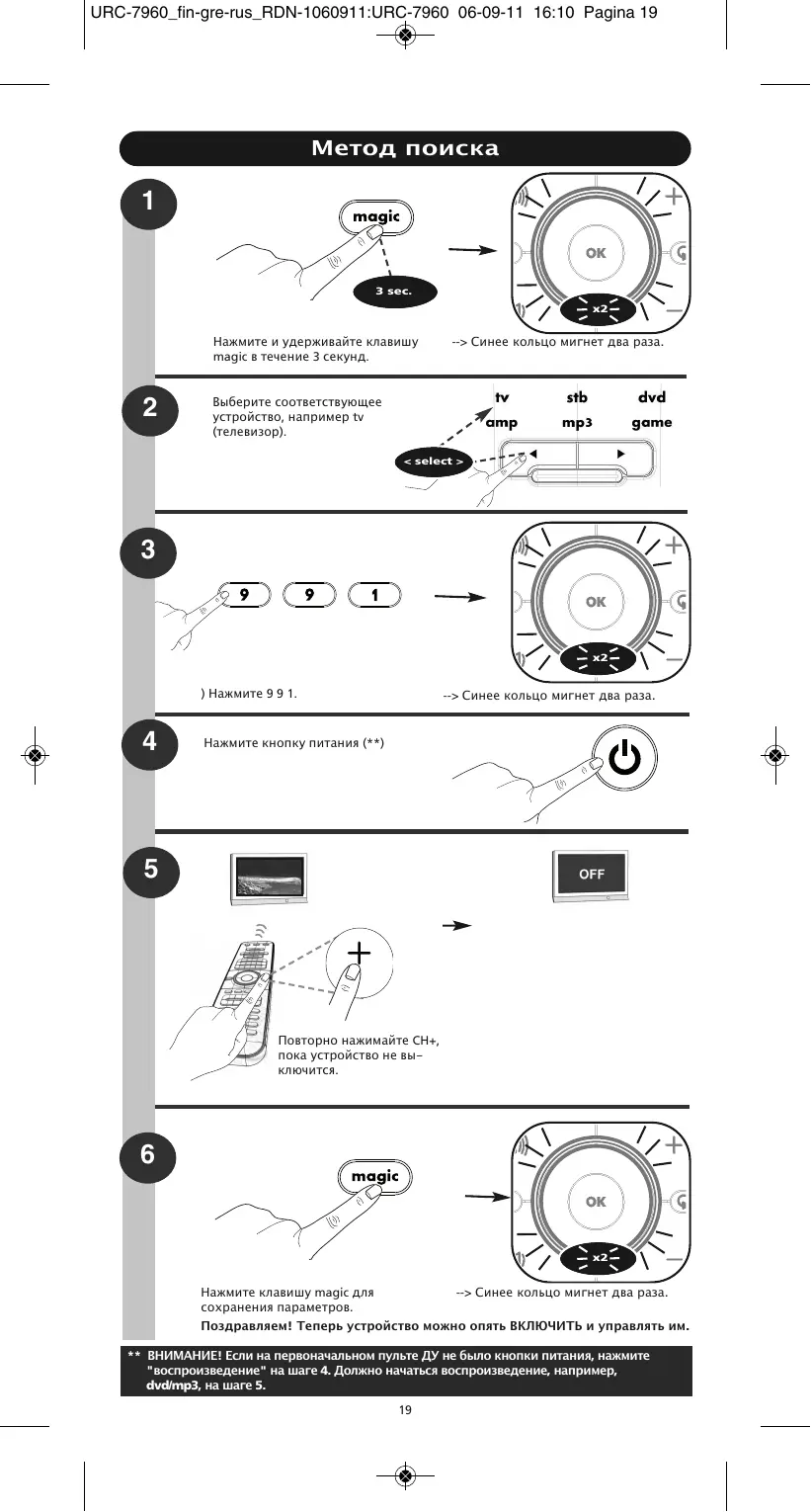РУКОВОДСТВО ПОЛЬЗОВАТЕЛЯ URC 7962 ONE FOR ALL