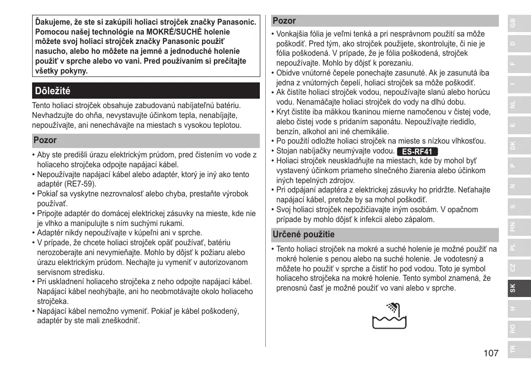 Téléchargez la notice de votre Elektrický holiaci strojček au format PDF gratuitement ! Retrouvez votre notice ES-RF41 - PANASONIC et reprennez votre appareil électronique en main. Sur cette page sont publiés tous les documents nécessaires à l'utilisation de votre appareil ES-RF41 de la marque PANASONIC.