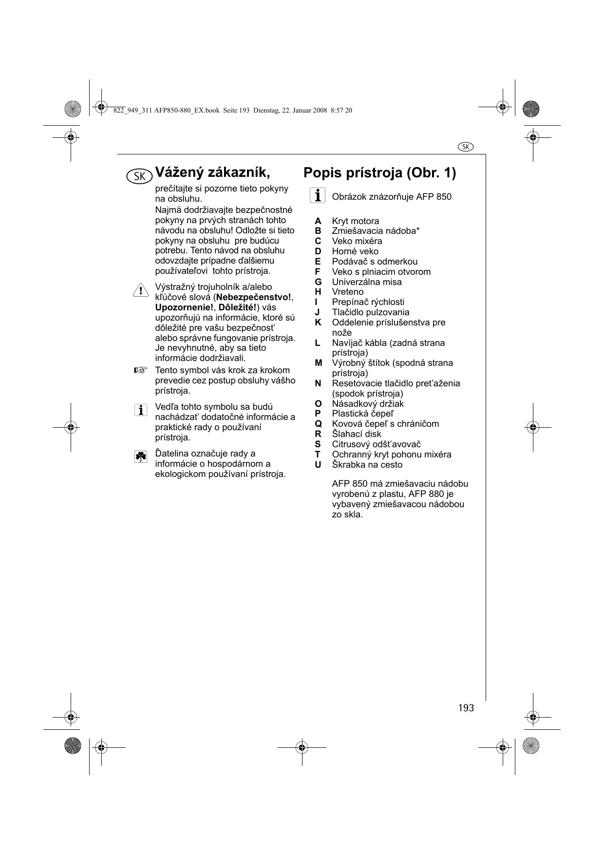upozorñuju na informácie, ktoré su dolezite pre vašu bezpečnost alebo správné fungovanie prístroja. Je nevyhnutné, aby sa tieto informácie dodržiavali.