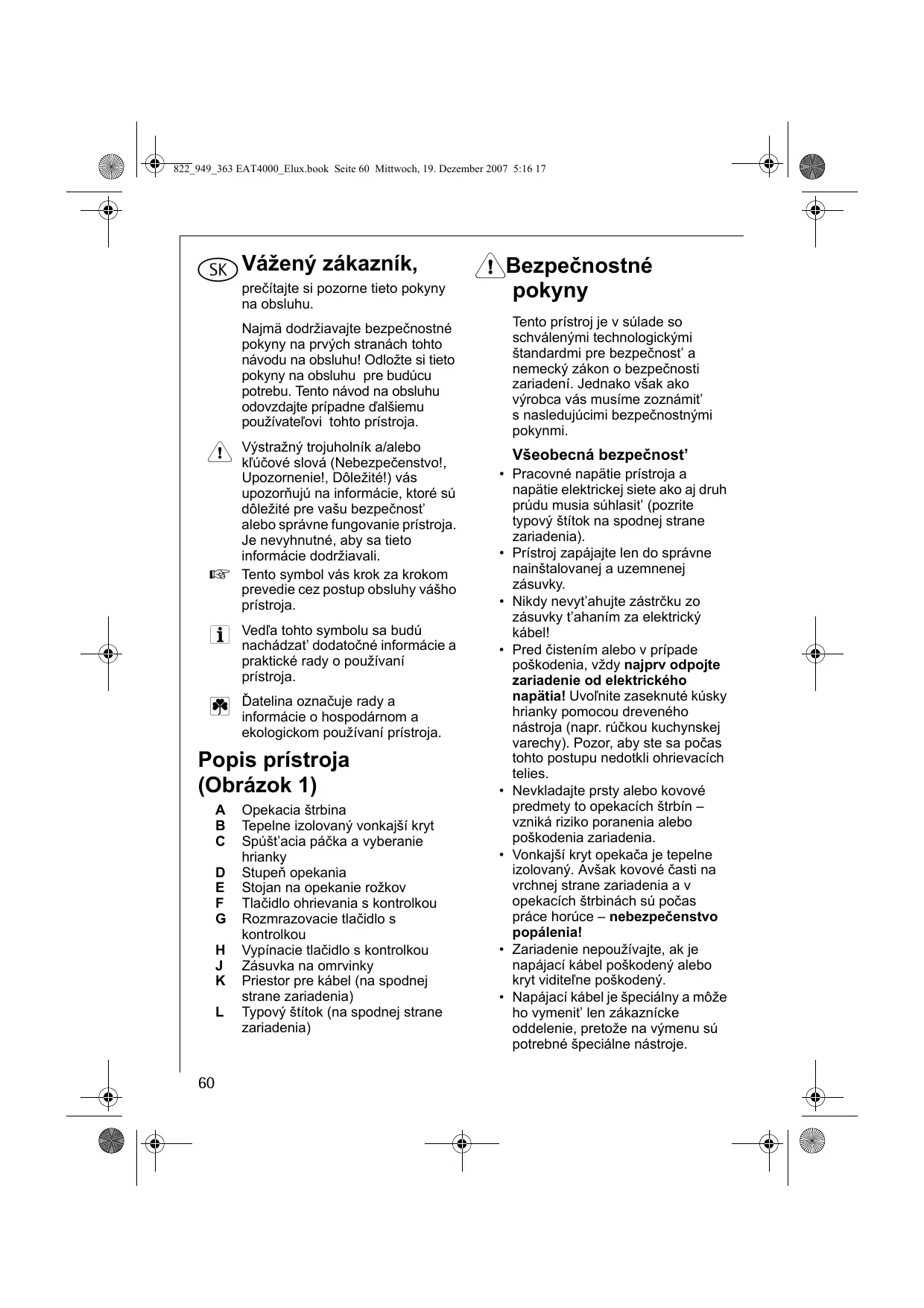 upozornuju na informácie, ktoré su dõležite pre vašu bezpečnost' alebo správné fungovanie prístroja. Je nevyhnutné, aby sa tieto informácie dodržiavali.