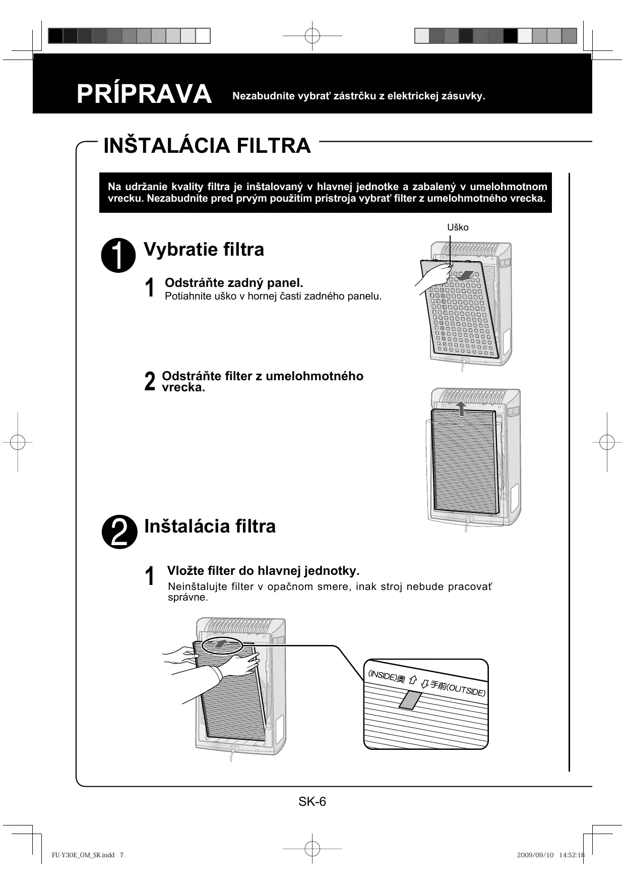NÁVOD NA OBSLUHU FU-Y30EU SHARP