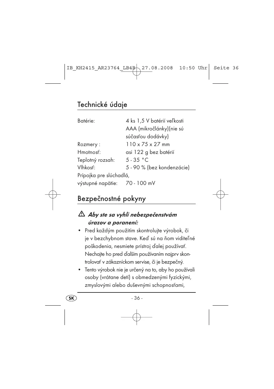 Voir la notice : Français FR Čeština CS English EN Slovenčina SK