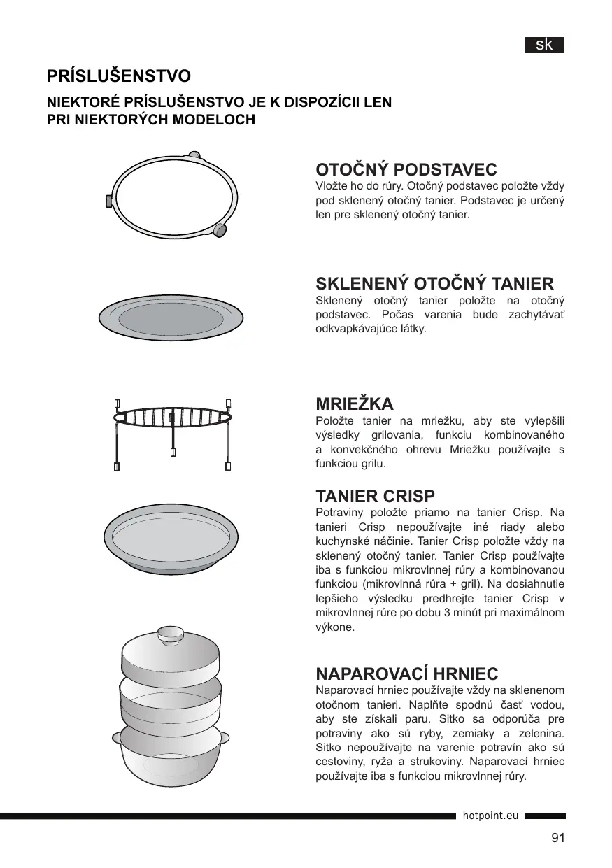 Naparovací hrniec používajte vždy na sklenenom otočnom tanieri. Naplňte spodnú časť vodou, aby ste získali paru. Sitko sa odporúča pre potraviny ako sú ryby, zemiaky a zelenina. Sitko nepoužívajte na varenie potravín ako sú cestoviny, ryža a strukoviny. Naparovací hrniec používajte iba s funkciou mikrovlnnej rúry. hotpoint.eu