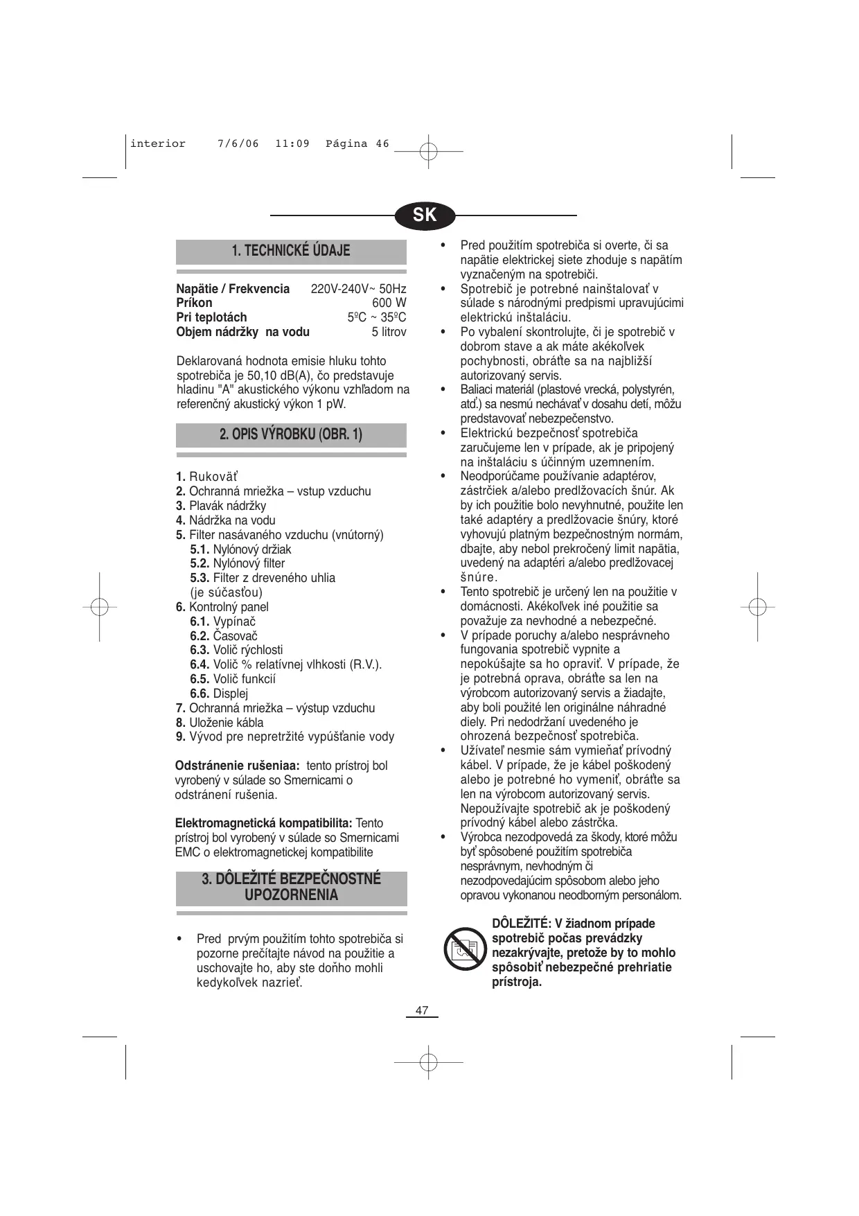 IMPORTANTE: No cubrir en ningún caso el aparato durante el funcionamiento porque se podría producir un sobrecalentamiento peligroso.