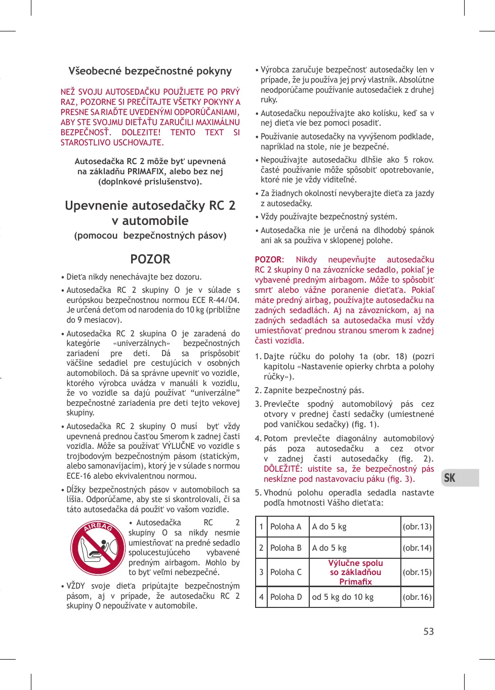 • Le siège auto RC 2 peut être installé sur le siège avant (dos à la route) après avoir désactivé l’airbag frontal ou bien à l’arrière de votre véhicule dos à la route. • Le siège auto RC 2 ne doit pas être installé à l’avant dans les véhicules équipés d’airbag frontal non déconnectables. • Utiliser le siège auto uniquement avec des ceintures de sécurité 3 points.