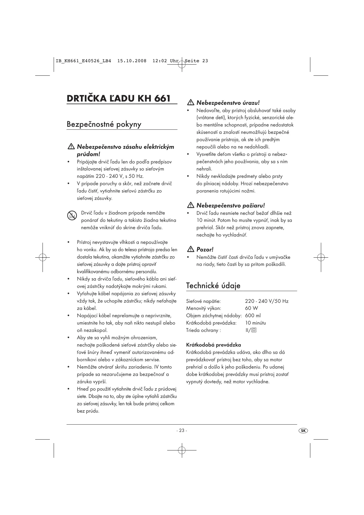 NÁVOD NA OBSLUHU KH 661 BIFINETT