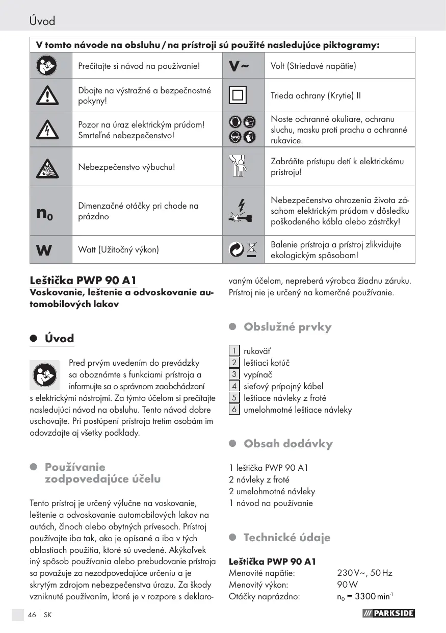 NÁVOD NA OBSLUHU PWP 90 A1 POLISHING MACHINE PARKSIDE