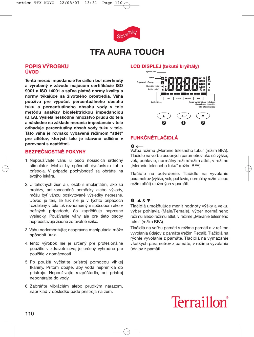 NÁVOD NA OBSLUHU TFA AURA TOUCH TERRAILLON