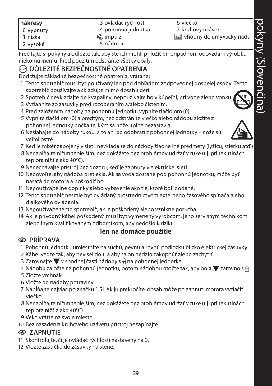 13 Nepouñivaite tento spotrebië, ak je poëkodenÿ alebo vznikne porucha. 14 Akje privodnÿ käbel poëkodenÿ, musi byt vymenenÿ vÿrobcom, jeho servisnÿm technikom alebo inÿm kvalifikovanÿm odbornikom, aby nedoëlo k riziku. len na domäce pouitie @ PRIPRAVA 1 Pohonnü jednotku umiestnite na suchü, pevnü a rovnü podloëku blizko elektrickej zäsuvky.
