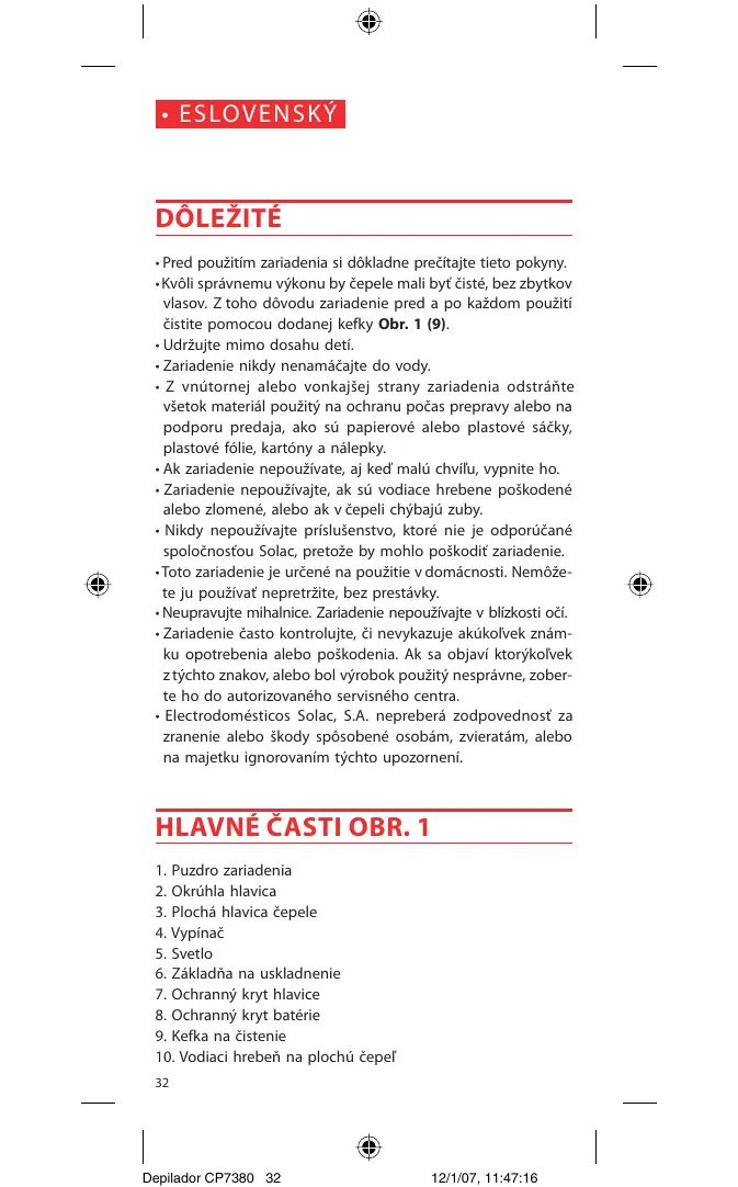 Nájdite návod k zariadeniu zdarma CP7380 SOLAC vo formáte PDF.