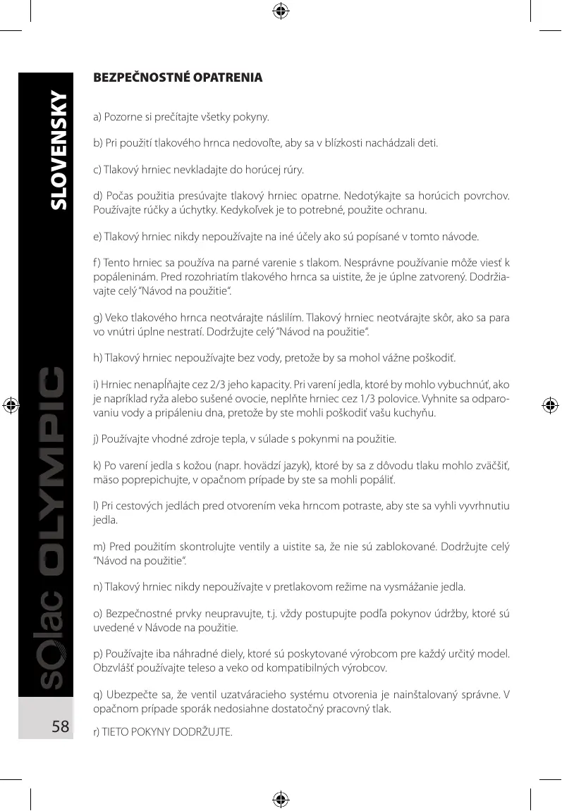 OLYMPIC - Tlakový hrniec SOLAC - Bezplatný návod na obsluhu