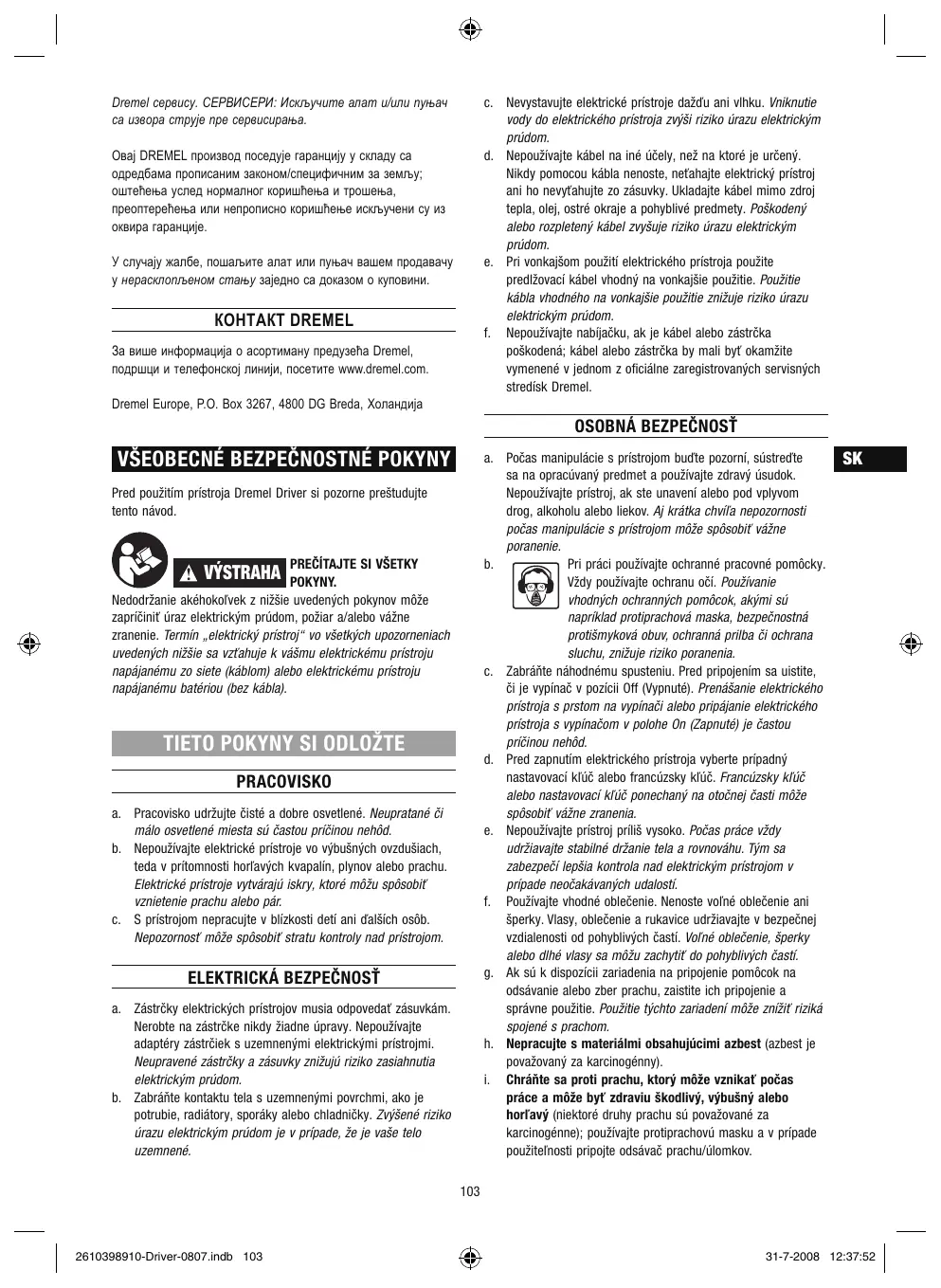 DRIVER - Rotujúci nástroj DREMEL - Notice d'utilisation et mode d'emploi gratuit