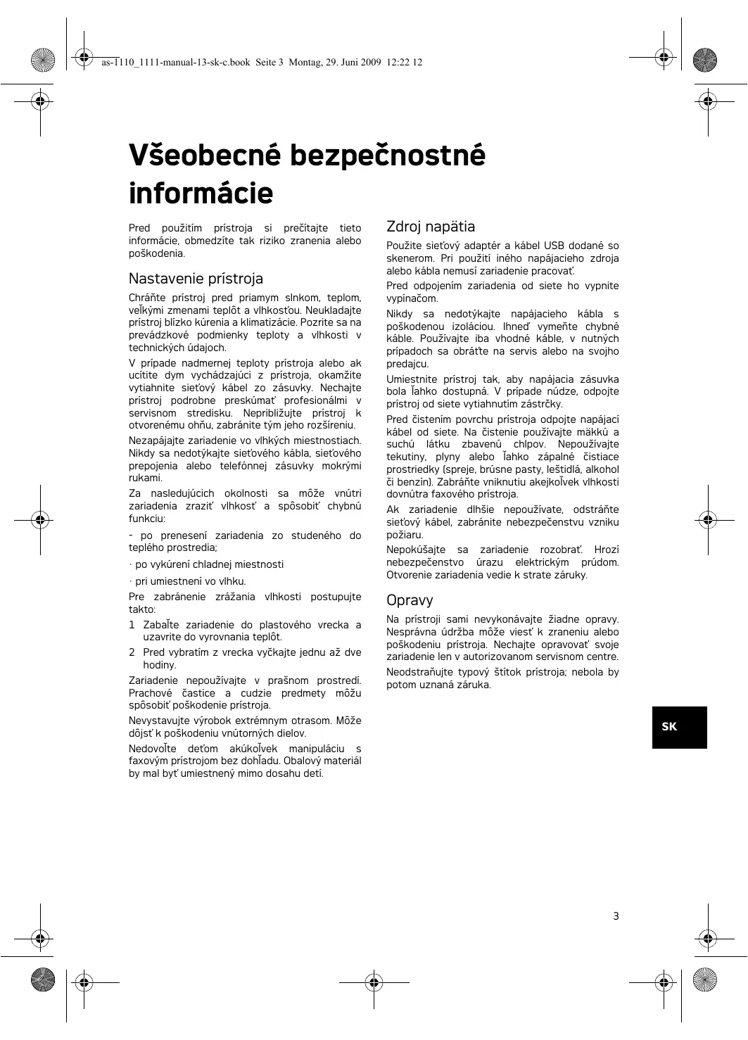 as-1110_1111-manual-13-sk-c.book Seite 12 Montag, 29. Juni 2009 12:22 12 Táto záruka neovplyvňuje práva zákazníka dané zákonom. sú kryté zárukou. Náklady na opravu hradí v každom prípade zákazník. B) Výnimky zo záruky
