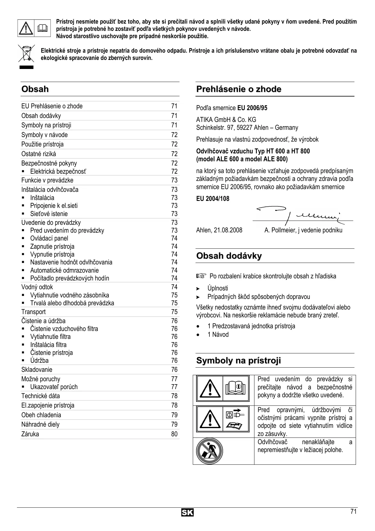 NÁVOD NA OBSLUHU ALE 800 ATIKA